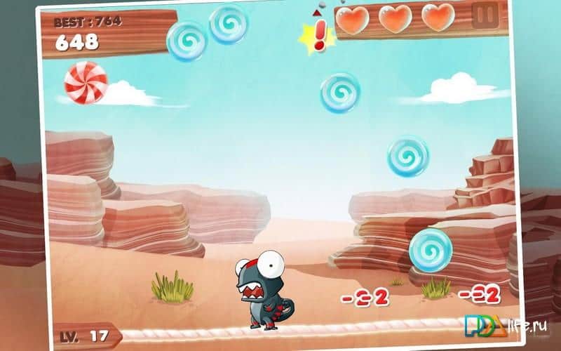 CandyMeleon - простая и затягивающая игра, в которой вам предстоит ловить конфеты. После взрыва на конфетной фабрике тысячи конфет разлетелись в небо и теперь вашему герою сладкоежке выпал отличный шанс собрать их все. С помощью длинного языка хамелеона собирайте летающие конфеты, но остерегайтесь получить не ту конфету. Каждые конфеты обладают различными свойствами, одни придают взрыв вкуса и цвета, а другие убьют вас, так что будьте осторожны.