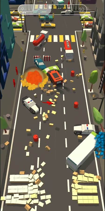Car Bump: Smash Hit in Smashy Road 3D - трехмерная автомобильная аркада в которой вам предстоит сев за руль автомобиля и отправившись на улицы города устроить настоящий хаос, при этом стоит помнить что улицы полны полиции которая будет вам мешать всеми возможными способами, а пешеходы окрашенные в красный цвет так же представляют опасность, в остальном вас ничто не сможет остановить, ведь полностью интерактивный мир можно разрушить до основания. Стильная полигональная графика отлично гармонирует с общей задумкой.