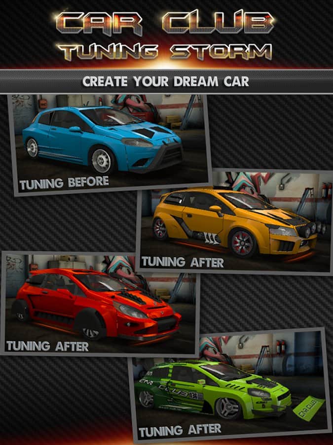 Car Club:Tuning Storm – как вы уже догадались, в этой игре на Android вам представится тюнинг автомобиля. И не просто тюнинг! А, по заявлению разработчика, в этой игра больше тюнинга, чем во всех играх! К вашему вниманию представлены полностью 3D автомобили со всеми возможными переделками. А гонять вы на них будете на самых настоящих стрит драг трассах. Превратите ваше авто в «пулю» и станьте королем драга!
