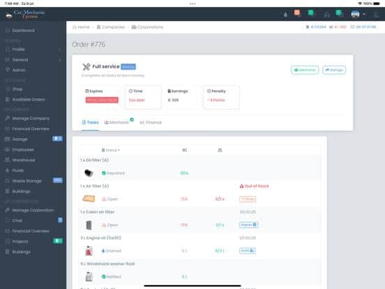 Car Mechanic Tycoon - игра-симулятор, где вы становитесь владельцем и управляете собственным гаражным бизнесом. Здесь вам предстоит принимать заказы от клиентов, нанимать и управлять сотрудниками, а также заниматься ремонтом автомобилей. Одним из самых важных аспектов вашего бизнеса будет обеспечение достаточного запаса деталей и жидкостей. Вы сможете закупать все необходимое, чтобы быть готовым к выполнению заказов клиентов вовремя и без проблем. Кроме того, не забывайте о здоровье и комфорте ваших сотрудников - убедитесь, что они высыпаются и, при необходимости, обновите их дипломы и навыки.