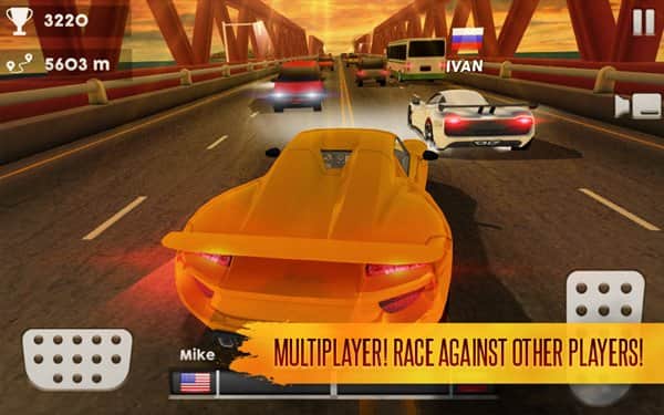 Car Racing Online Traffic - Гонки на больших скоростях и с простым управлением. Эта игра подойдет и для тех кто любит гоняться один, и для тех кто предпочитает соревноваться с реальными игроками. В самом начале вам предложат выбрать автомобиль который потом вы сможете сменить на более быстрый или же просто улучшить. За каждую гонку вам будут давать деньги и их сумма будет зависеть от того как быстро вы выполните задание. Задания кстати в игре разные, не обязательно нужно ехать кто первый, можно взять задание на прохождение контрольных точек за определенный промежуток времени.