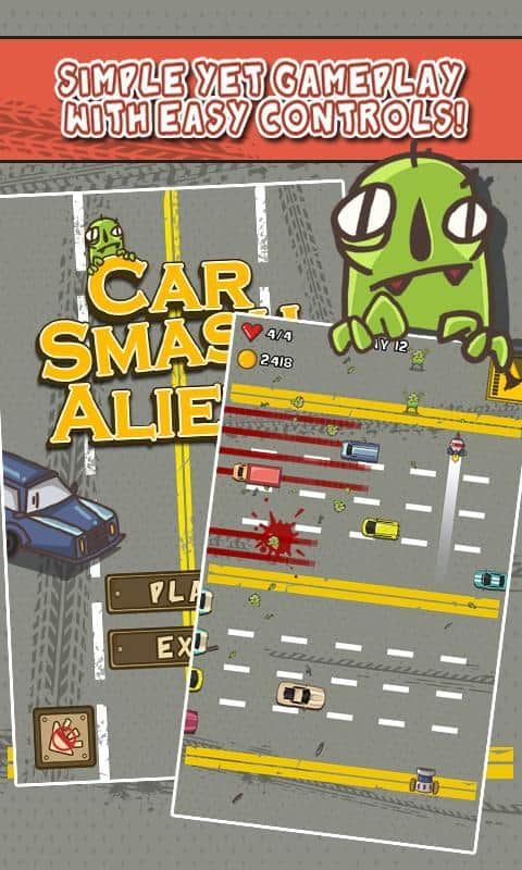 Car Smash Aliens – злые пришельцы атакую нашу планету и вашей главной задачей будет уничтожить их. Возьмите под свой контроль мощную пушку и уничтожайте всех приближающихся к вашей базе пришельцев. Запускайте ракеты, а также давите инопланетян машинами, едущими по трассе. Проявите всю свою ловкость и скорость пальцев, и не дайте врагам приблизится к вам. Контролируйте движение автомобилей и ракет и устройте фееричное шоу, уничтожая пришельцев. Убивайте врагов, зарабатывайте деньги и приобретайте новые усиления и апгрейды для автомобилей и пушки. Простая игра с удобным управлением которая порадует вас бонусами и хардкорными уровнями.
