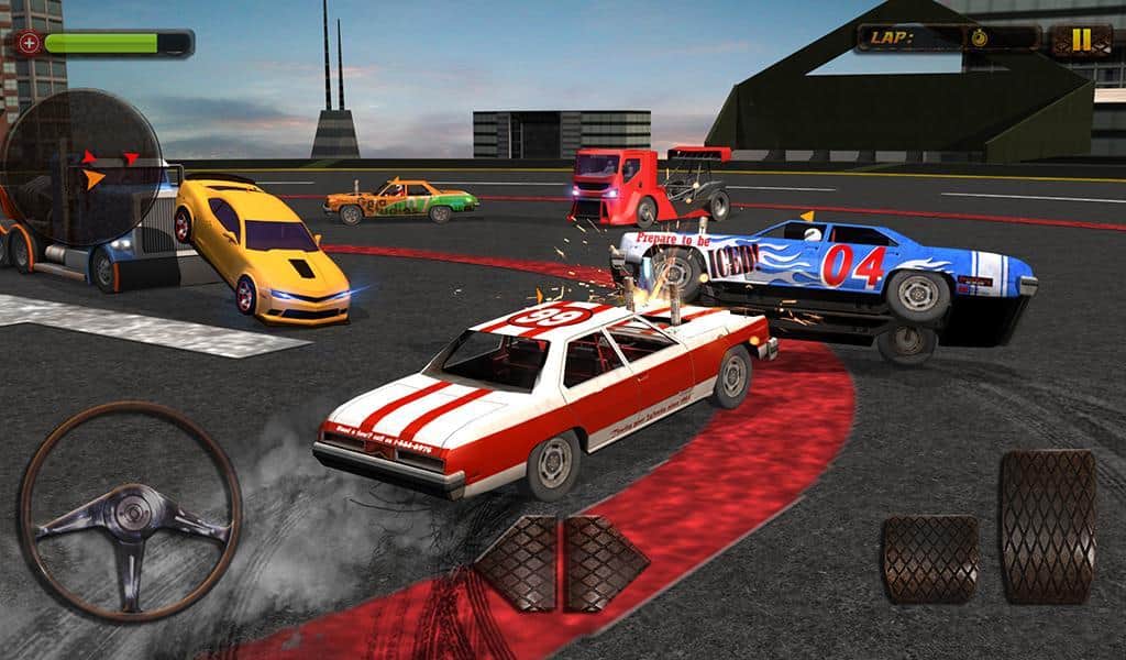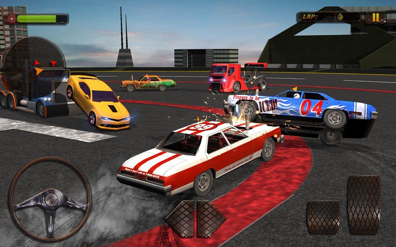 Car Wars 3D: Demolition Mania – экстремальные гонки на андроид, где вам предстоит таранить машины соперников. В этой игре вы окажитесь на арене наполненной различными машинами, вашей задачей будет разгонять свою машину до предела и на полной скорости таранить машины соперников, превращая их в груду металлолома. Для более эффектной игры используйте трамплины, чтобы совершать невероятные маневры и уклоняться от преследующих вас машин. Игра порадует вас разнообразными аренами, с многочисленными препятствиями которые могут располагаться на крыше высотных домов. Выбирайте себе автомобиль из многочисленных представленных в игре и наслаждайтесь отличной физикой.