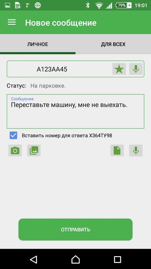 Car2Car имеет одностороннюю связь, однако если вам необходим срочный ответ, вы можете оставить в сообщении свои контактные данные. Приложение препятствует рассылке спама и сообщений носящих оскорбительный характер, блокируя возможность отправки сообщений неограниченному кругу лиц.