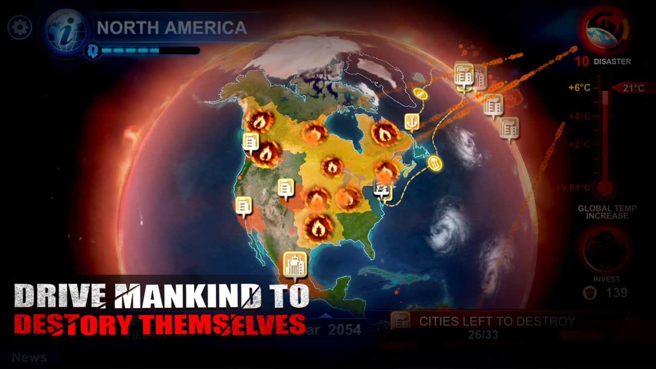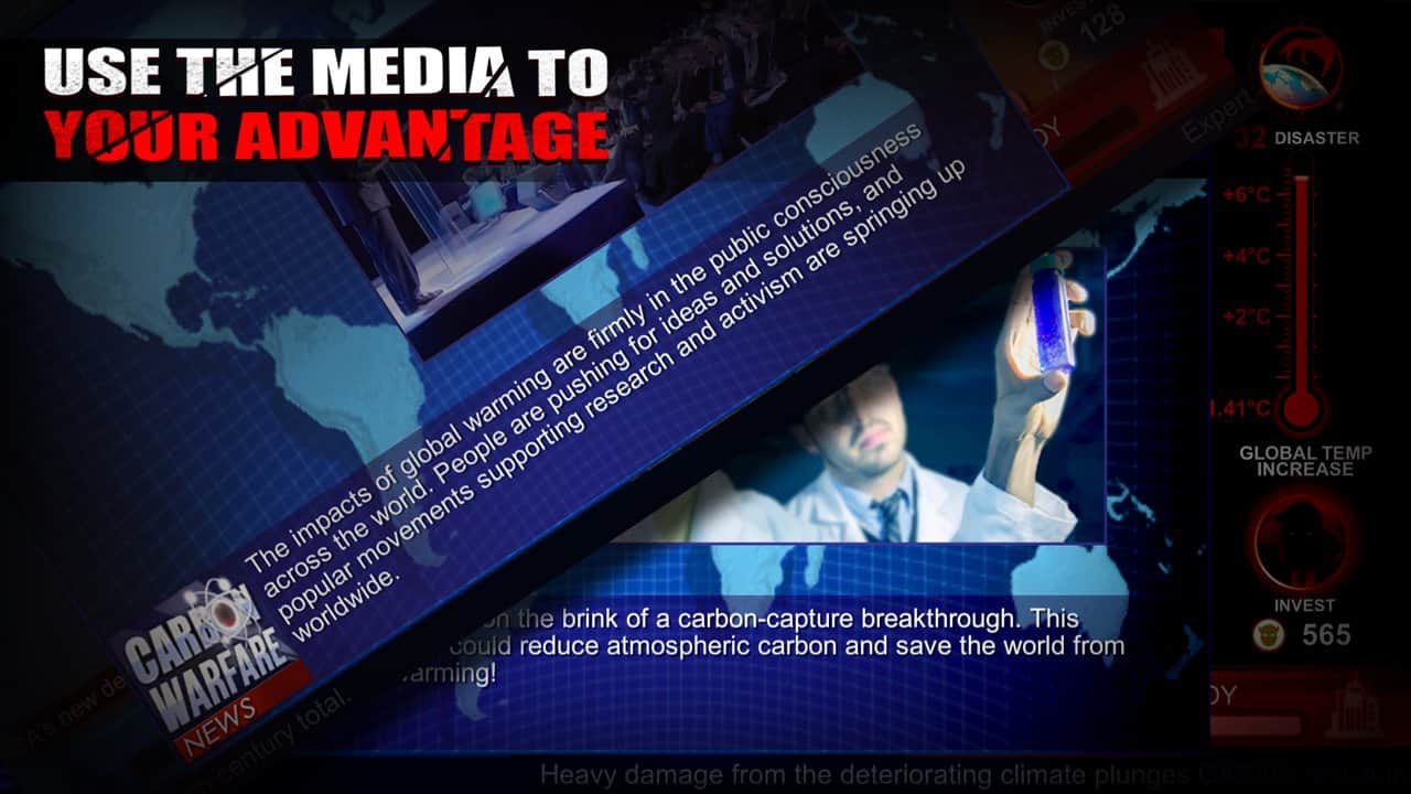 За последние несколько десятилетий человечество совершила настоящий скачок в области технологий, промышленности, экономики, но все эти достижения так или иначе затрагивают каждого из нас в частности и конечно же общее положение вещей на планете. Одним из самых хрупких элементов конечно же является экология, сотни тонн отходов, кубометры углекислого газа, вырубка лесов все это приводит к парниковому эффекту и как следствие к эффекту глобального потепления. Carbon Warfare - глобальная стратегия которая призвана обратить внимание человечества на эти проблемы, вам же отводиться роль вовсе не спасителя, как можно было подумать, а как раз наоборот. Главная цель игры заставить человечество производить как можно больше поражающих факторов, тем самым спровоцировав глобальную экологическую катастрофу.