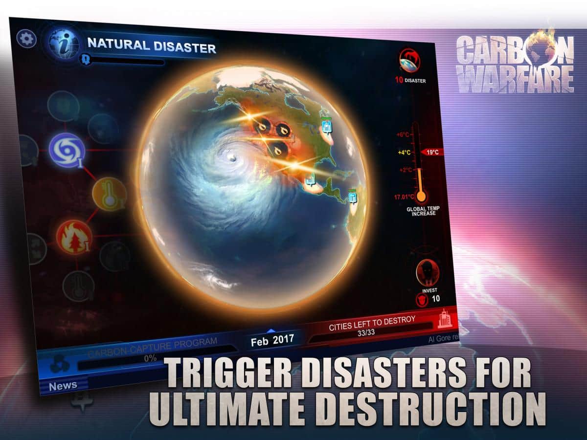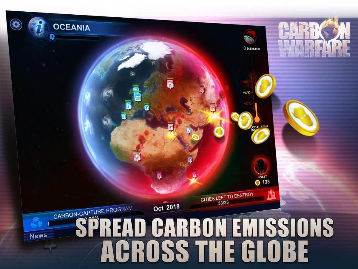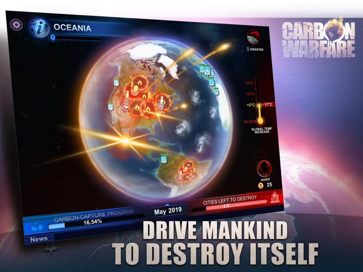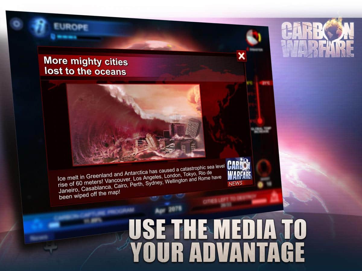Carbon Warfare - Эта стратегия задевает самые уязвимые части нашей планеты, а именно экологию. Разработчики этой игры хорошо потрудились и создали стратегию напрямую связанную с реальными проблемами. Вам предстоит управлять сразу целой планетой, и следить за её экологией. К тому же в данной игре несколько игровых режимов, один из которых это обычная компания на прохождение. Так же есть различные уровни сложности и многое другое. В целом игры довольно простая, но освоить все её аспекты будет довольно трудно. Берегите природу и не мусорите где попало, а из этой игры вы сможете узнать о последствиях.
