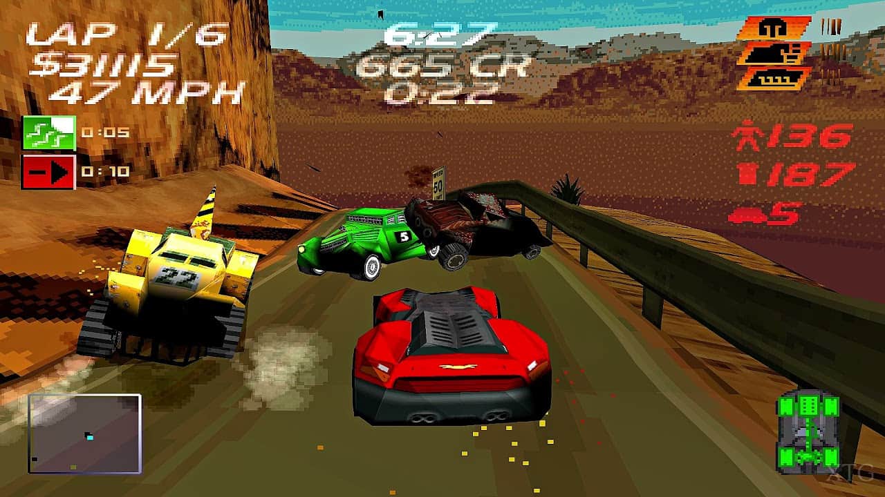 Carmageddon - На обычных гонках не так весело, как на тех, где можно использовать различное оружие, бомбы и другое снаряжение, которое испортит любой из автомобилей ваших соперников. В этих гонках нет правил, единственное что самое важное — число убитых или раненых противников, даже если вы пришли не первым на финиш. Заработайте как можно больше денег, чтобы приобрести новые тачки или улучшить уже существующие, так как не только вам предстоит избавляться от соперников, но и они попытаются это сделать с вами. Крушите все на своем пути!