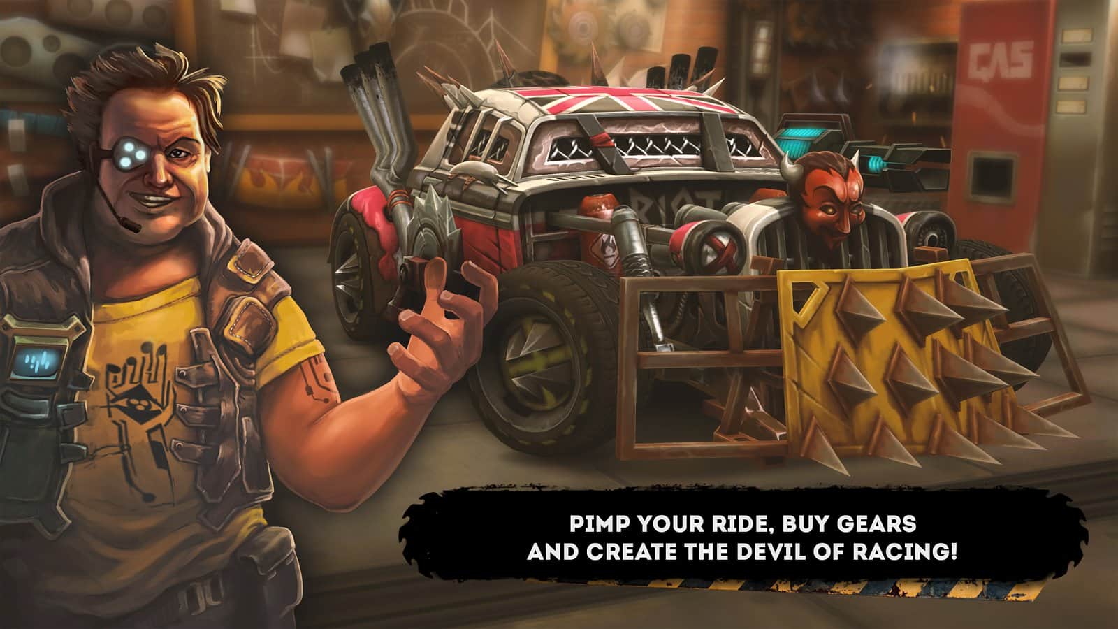 CaRRage — это увлекательный аркадный рейсинг на Android, действие которого происходит в постапокалиптической вселенной безумных и отчаянных гонщиков. Вас ждет проработанная физика, так что вы сможете почувствовать себя за рулем настоящего боевого автомобиля. Благодаря изумительной графике и новейшим возможностям движка Unity стали доступны реалистичные аварии и перевороты, красочные взрывы и стрельба. Все это окунет вас в атмосферу старых добрых аркадных гонок.
