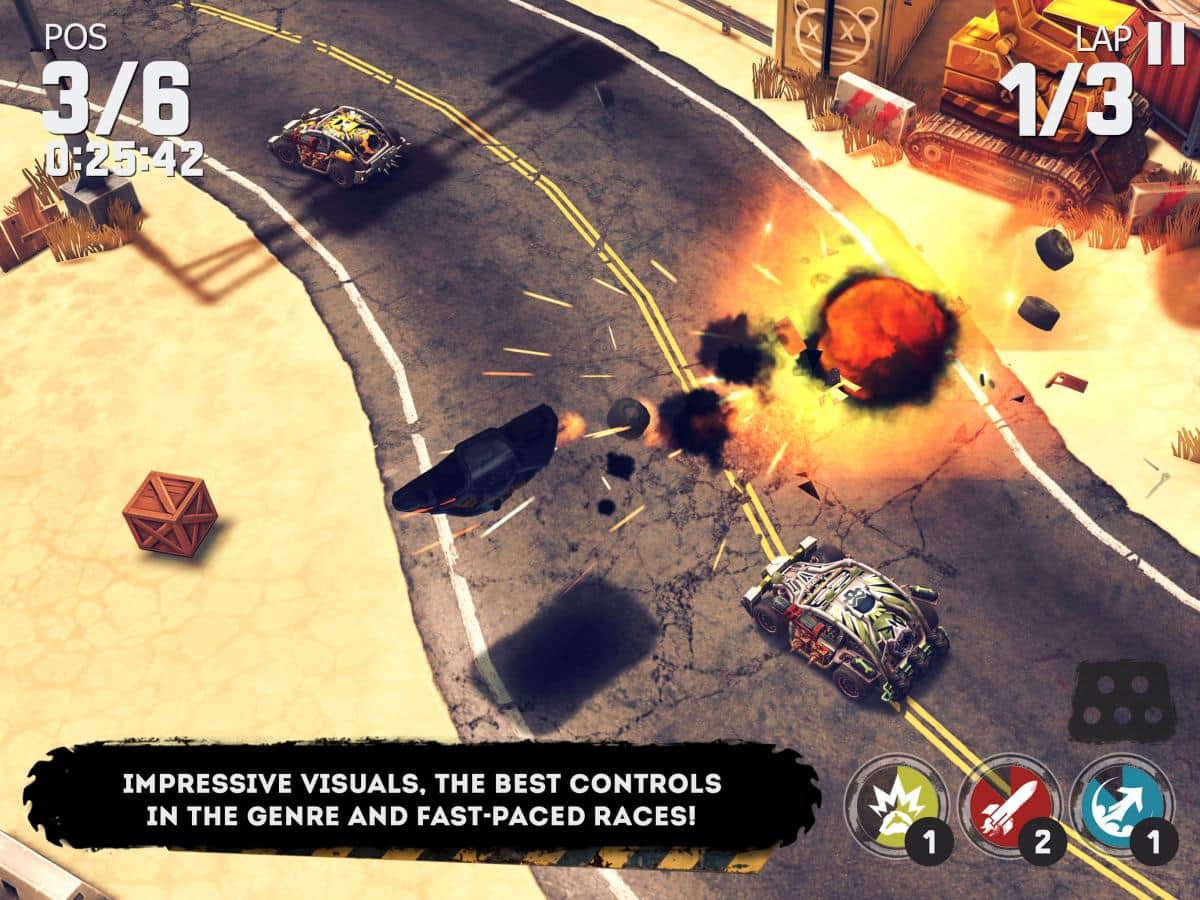 caRRage - Время крушить и взрывать! Садитесь за руль своего адского автомобиля, обвешенного тоннами оружия и вперед в бой, крушить своих противников в решето. Это первоклассный аркадные гонки, с множеством различного контента, и отличной современной 3D графикой. Здесь вы найдете все что душе угодно, возможность выбрать автомобиль с различными характеристиками, которые потом ещё и прокачать можно будет. Или же выбери оружие, что тебе по душе стрелять, или же взрывать? Не важно, делай и то и другое, и создай настоящего демона на колесах.