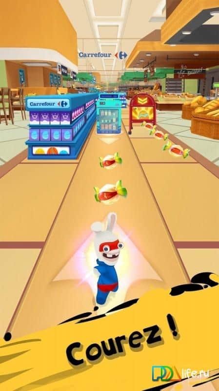 Carrefour Rush Lapins Crétins - новый красочный ранер от студии Ubisoft, главными действующими лицами которого выступили всем хорошо знакомые несносные кролики. На этот раз история игры переносит нас на просторы огромного супермаркета, как следствие вам предстоит совершать бесконечные забеги между витринами, прилавками и при этом конечно же собирать всевозможные сладости которые вы в последствии сможете использовать для развития своего героя. Как и в большинстве игр данного разработчик в Carrefour Rush Lapins Crétins отличная трехмерная графика с яркой анимацией, проработанный геймплей, уже так хорошо знакомы и полюбившиеся персонажи, так что данный проект станет настоящим подарком для поклонников ранеров.