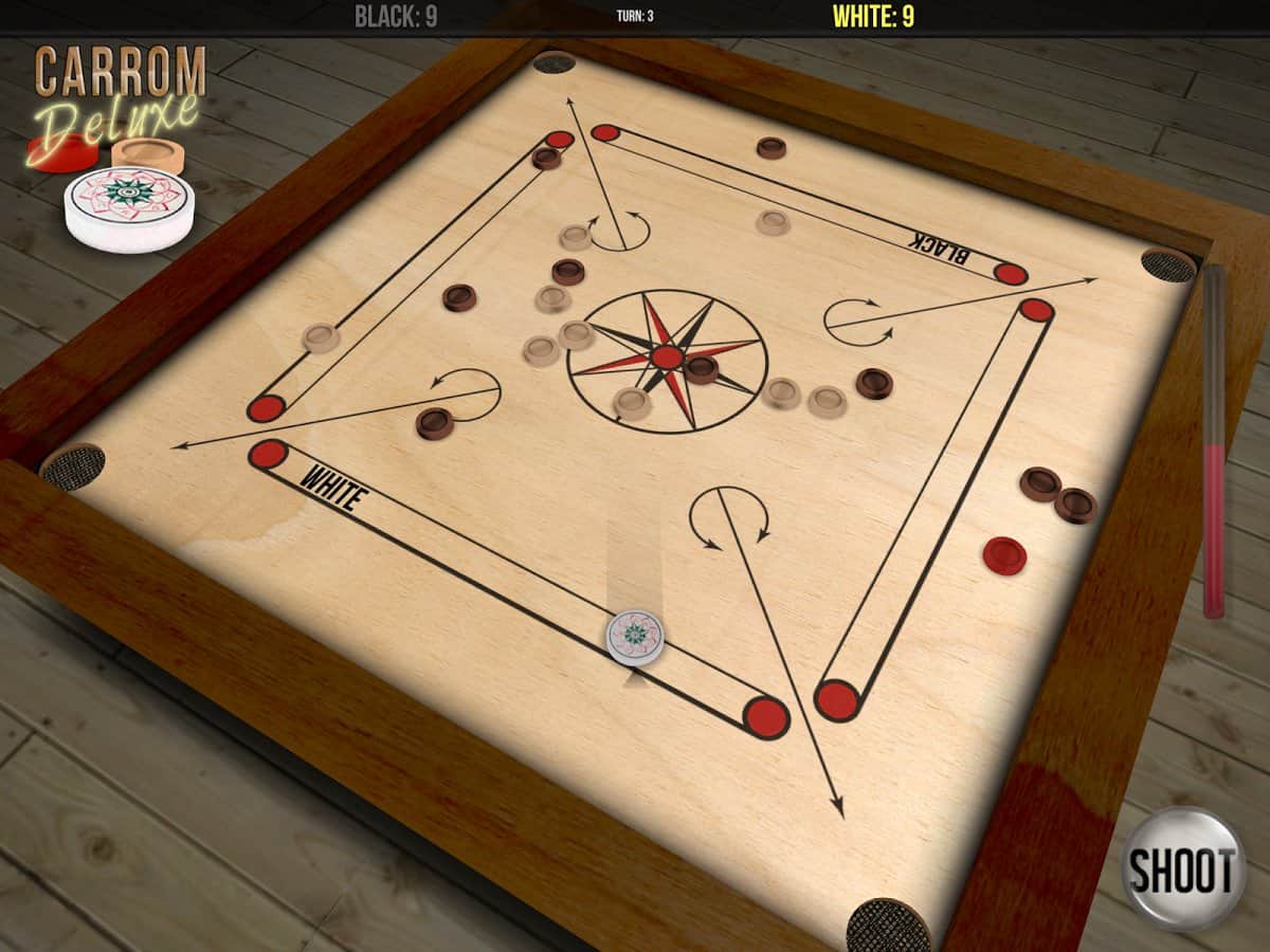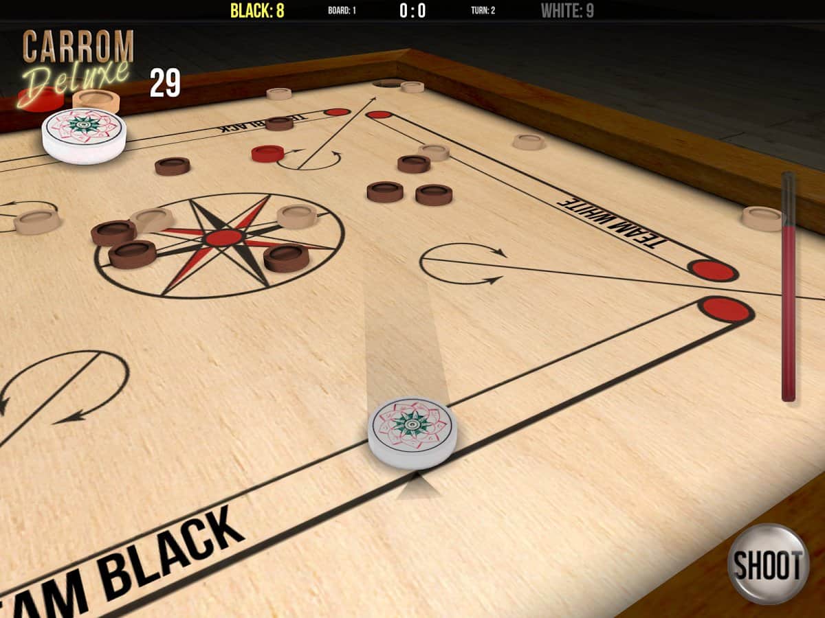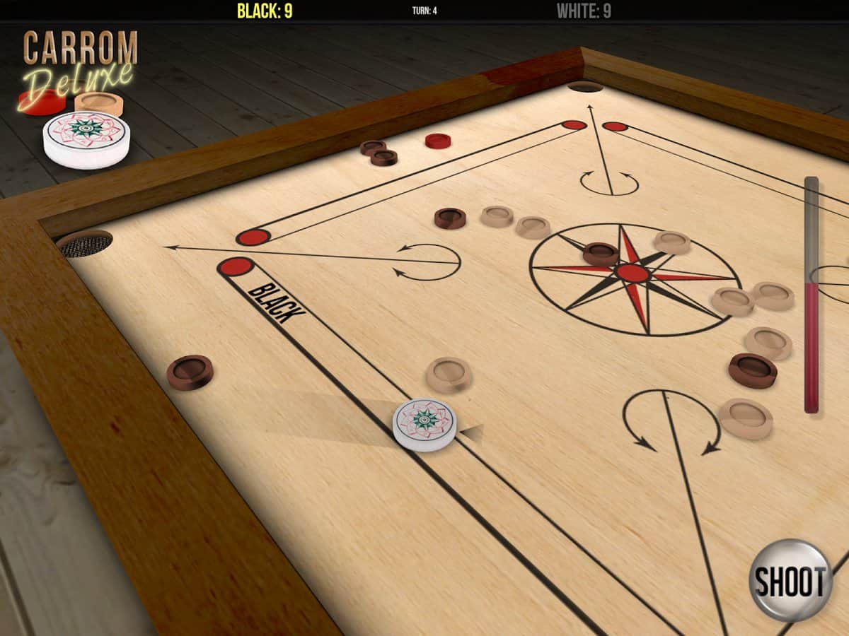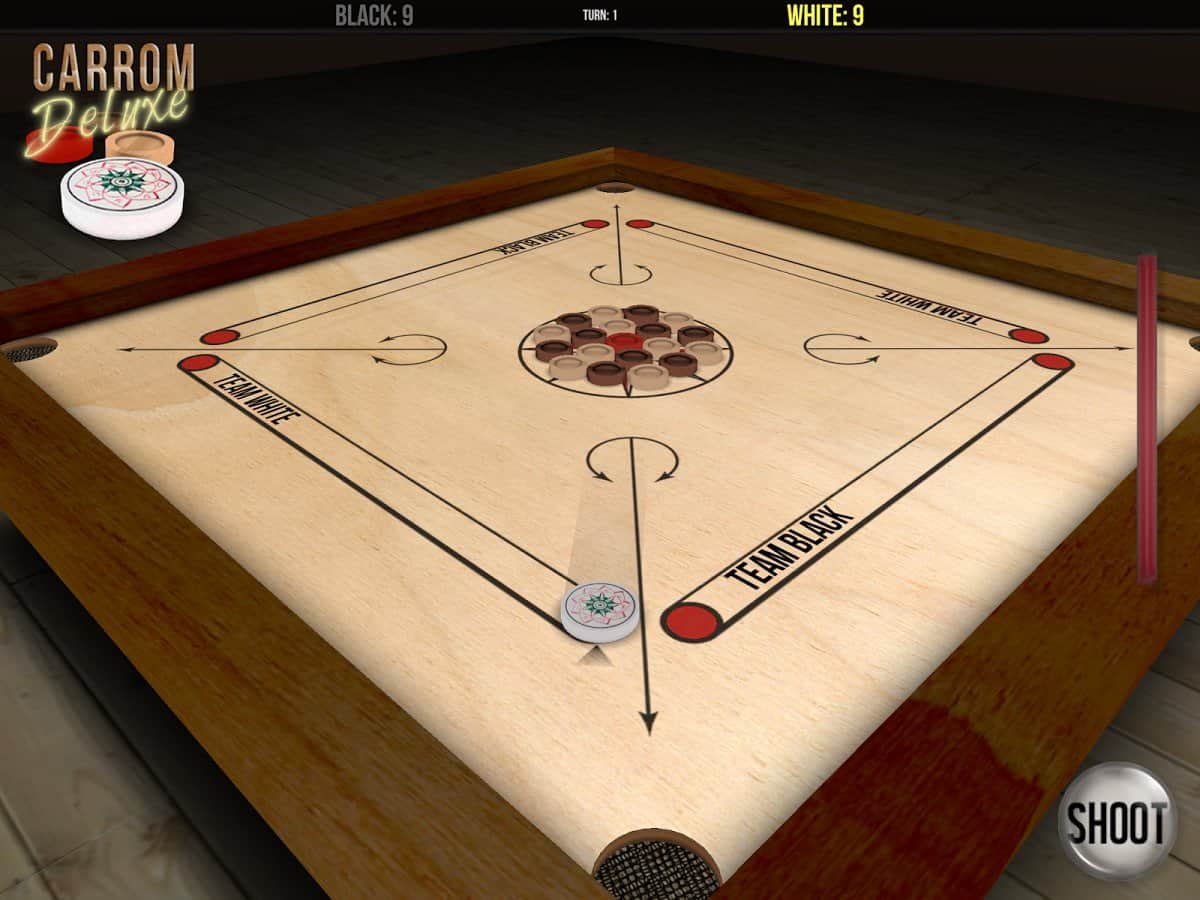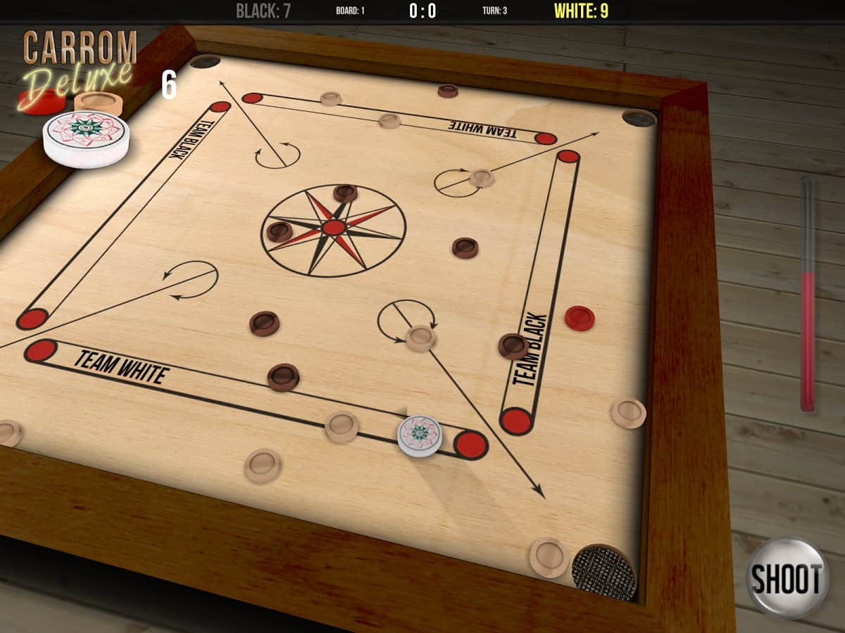 Carrom Deluxe – увлекательная игра очень популярная в Южной Азии которая напоминает бильярд. В этой игре вашей задачей будет забрасывать фишки в специальные карманы расположенные в каждом углу игрового стола. Выигрывает тот игрок кто первый забросит все фишки, в независимости от цвета, в карманы. В эту игру вы сможет играть со своими друзьями одновременно до четырех человек в режиме «Команда», либо против компьютера. Игра порадует вас 3D графикой и игрой от первого лица, а также реалистичной физикой движения фишек. Выбирайте понравившийся вам уровень сложности и наслаждайтесь игрой.