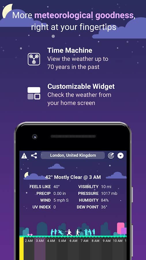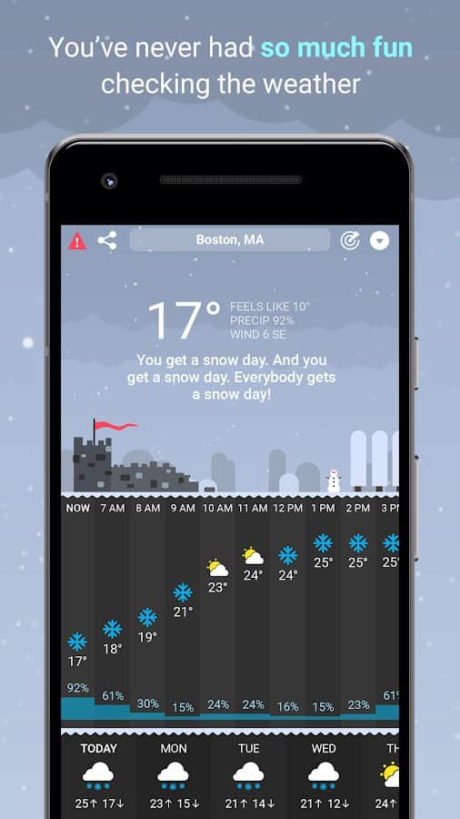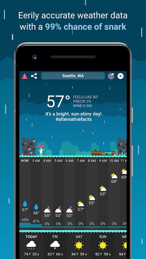 CARROT Weather - приложение которое позволит вам отслеживать любые изменения погоды, а так же планировать поездки, отдых и прочее. При этом данная программа позволяет отследить погодные явления вплоть до минут. Своевременное оповещение о различных форс мажорных обстоятельствах, а настраиваемый виджет позволит вам быть в курсе каждую минуту. Есть еще одна интересная возможность, это архив погодных изменений за прошлые 70 лет, а так же долговременный прогноз на ближайшее десятилетие.