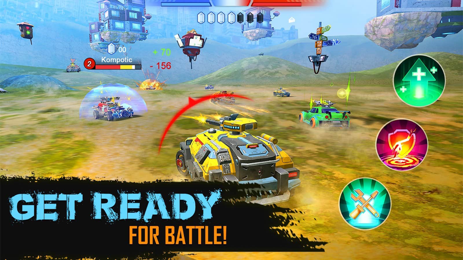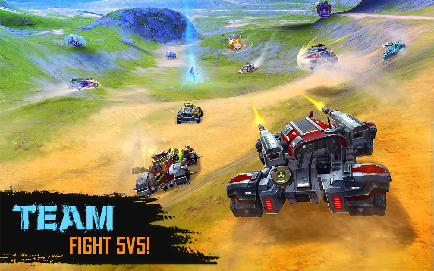 Cars of War – шутер на андроид, где вы будете управлять скоростными и все проходными машинами. В игре вы примите участие в боях проходящих в режиме 5 на 5 в различных вселенных. Выбирайте себе автомобиль из трех различных классов, каждый из которых имеет уникальную механику и набор оружия. Гоняйте по многочисленным и разнообразным локациям в компании соперников и старайтесь быстрее их собрать все кристаллы, появляющиеся на карте. Ведите бой с многочисленными противниками и хорошо прицеливайтесь, чтобы уничтожить машину противника.