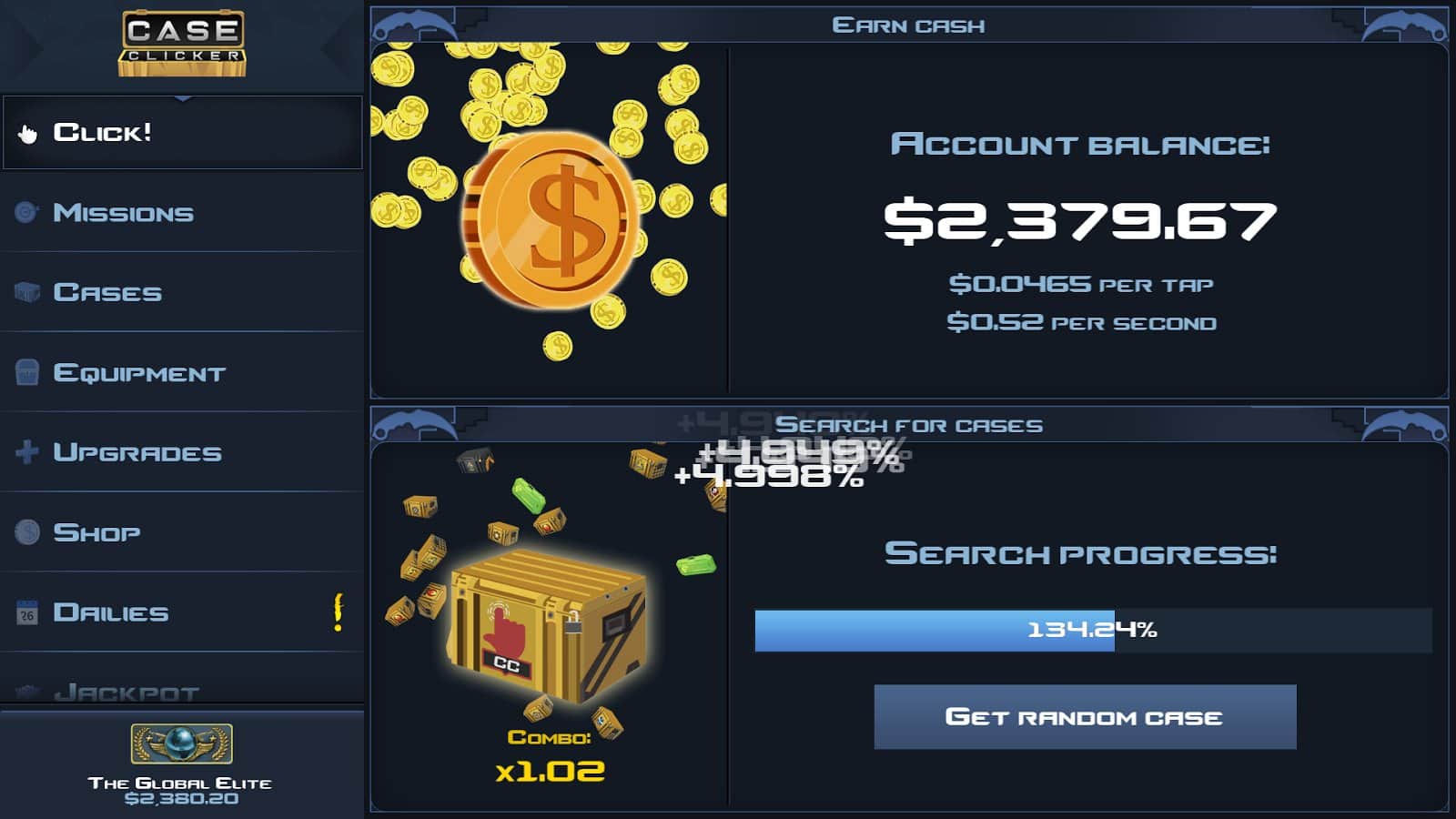 Case Clicker 2 – кликер игра на Андроид, где вам предстоит покупать ключи и открывать кейсы с помощью них. Эта игра понравиться любителям Counter Strike, ведь она сочетает в себе симулятор реальной игры с договорами и сделками. В этой игре вы не просто будете кликать по экрану телефона, но при этом проводить сделки, продавать скины по реальным рыночным ценам и получать более 150 обновлений. Играйте и проходите, различные миссии по открыванию кейсов и получайте капсулы с наклейками.
