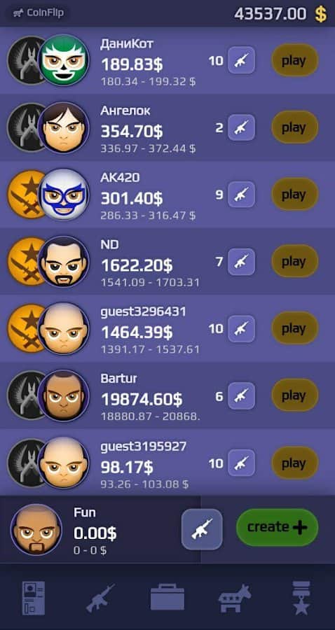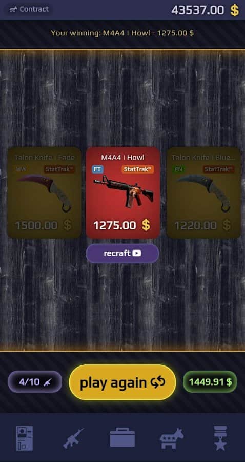 Case Royale - Попробуйте открывать кейсы из увлекательной игры CS:GO в реальном времени! Уникальный персонаж, постоянные соревнования с другими игроками за редкое оружие, простой просмотр внешних видов в 3D, соревнования за многие скины и пушки, понятный интерфейс и веселое времяпровождение. Попробуйте поиграть в 4 доступных режима как в команде, так и в одиночку. Обменивайтесь предметами по выгодным сделкам и покупайте новые кейсы из категорий распределенных по уровням. Попробуйте только раз и надолго залипните!