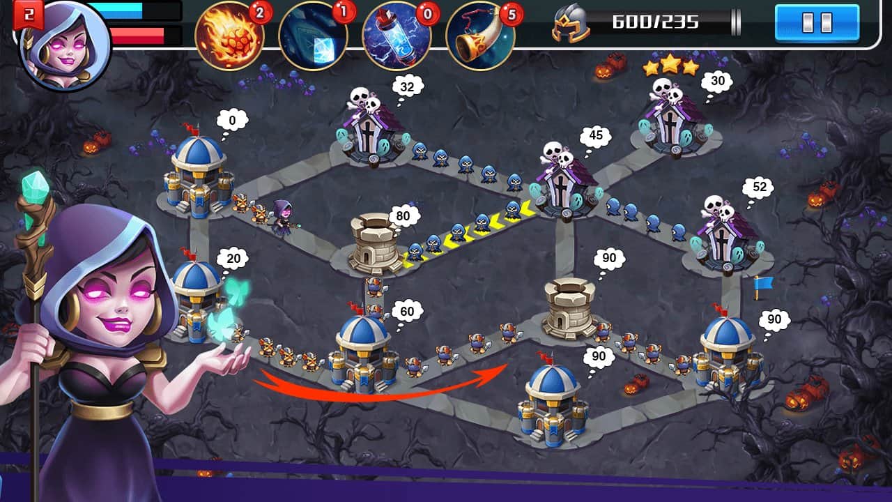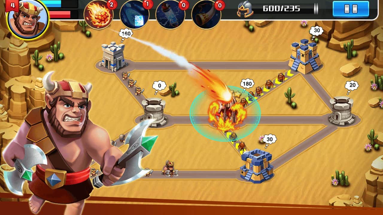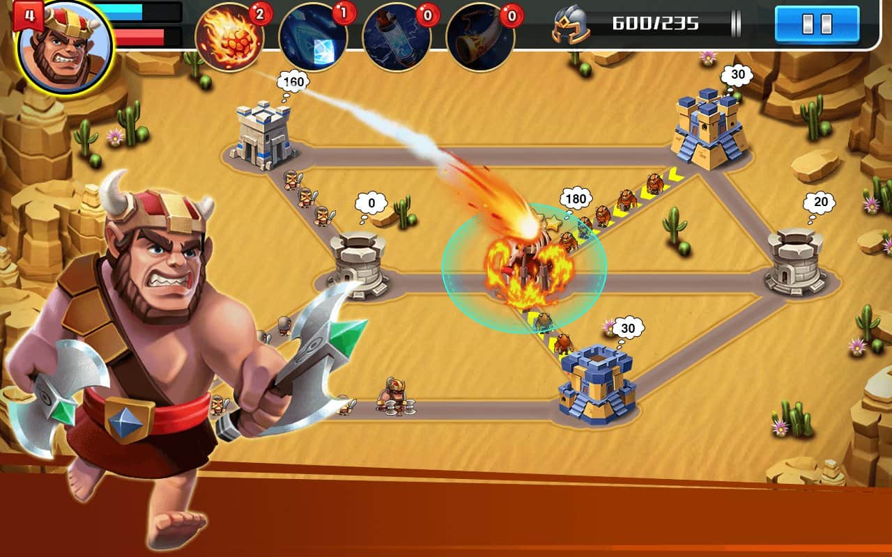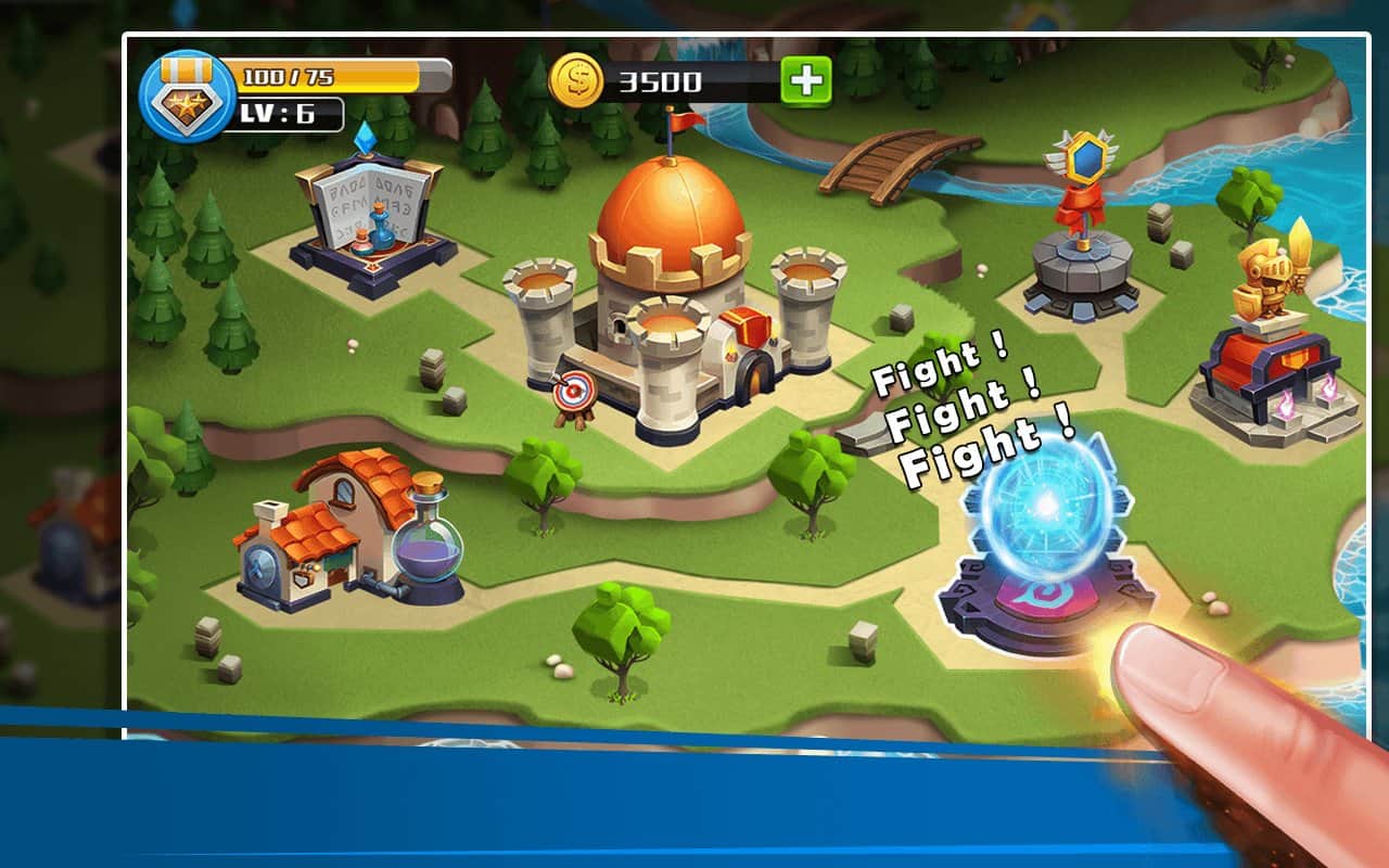 Castle Battle – игра на андроид, где вы будете защищать свой замок от врагов. В этой игре вы окажитесь на поле, где размешен ваш замок и многочисленные враги, вашей задачей будет собрать могущественную армию из героев и дать отпор врагам. Разрабатывайте свою непобедимую стратегию ведения боя и опережайте ходы противника. Станьте опытным правителем своего королевства и верните обратно свой замок. Призывайте на поле битвы сильных героев, а также воспользуйтесь магией и мощными заклинаниями. Впереди вас ждут более 45 увлекательных уровней, множество героев и бонусов.