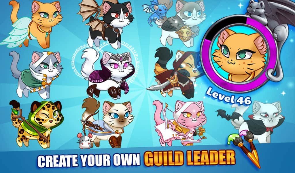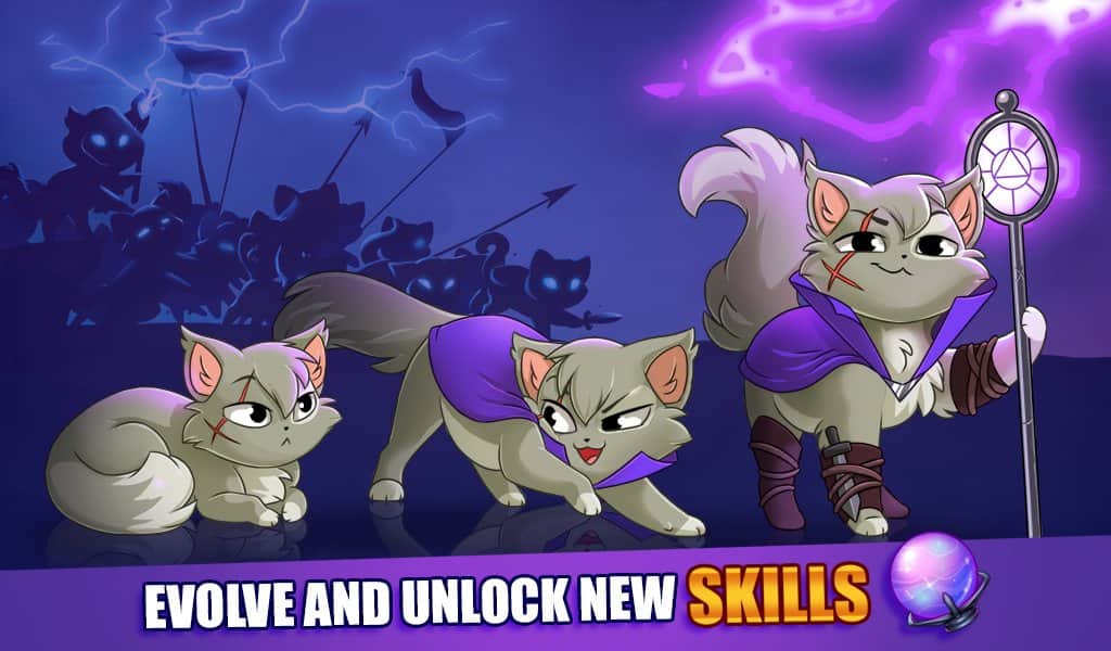 Castle Cats – отличная приключенческая игра на андроид, где вы будете управлять воинственными котами. Соберите свою непобедимую гильдию и вступайте в бой с врагами в качестве рыцаря Конана, лучника Кэтнисс и мага Фрэнсиса. В этой игре вы будете управлять милыми котиками, которые в одиночку решили победить злого Некромопса. Всего в игре представлено более 60 уникальных и неповторимых героев, которых вы будете улучшать по ходу игры. В своем замке вы будете тренировать, вербовать и разрабатывать непобедимую тактику ведения боя. Выпускайте своих котиков и сражайтесь с многочисленными врагами, которые хотят поработить весь мир.