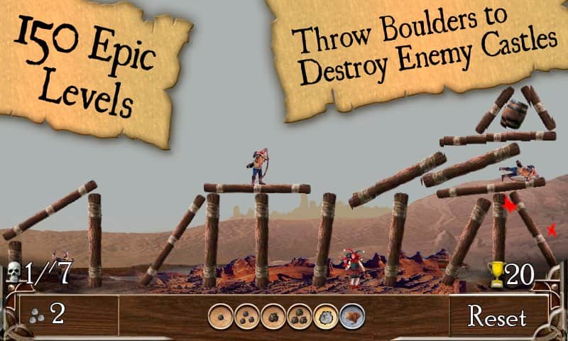 Castle Clout - игра на аndroid, в которой вам предстоит снести замок с помощью катапульты. Попадите в средние века и с помощью валунов, бомб и многих других приспособлений свергнете всех врагов. Вы можете нанести большие разрушения если точно направите цель и угол поворота катапульты. А также можете расширить свое королевство, построив замок с помощью редакторов уровней.