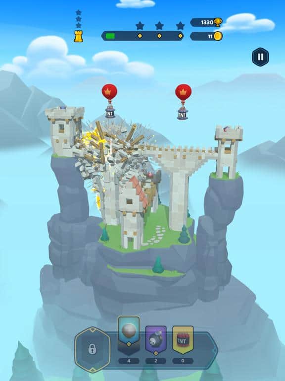 Castle Crumble - В те времена, когда провозглашались огромные королевства на далеких сказочных землях, каждый из них строился по-разному, имел уникальную власть и путь, но одно оставалось неизменно — захват новых территорий. Получив роль короля в одном из замке вы возьмете на себя ответственность за его защиту и привлечение других местностях, продумывая стратегии по завоеваниям. Подготовьте наступательные ядра и необходимые механики для достижения цели, только взрывами вы сможете захватить чужую власть и превратить её в свою.