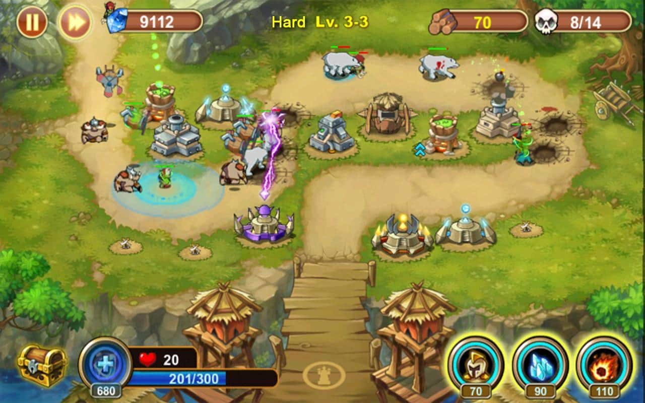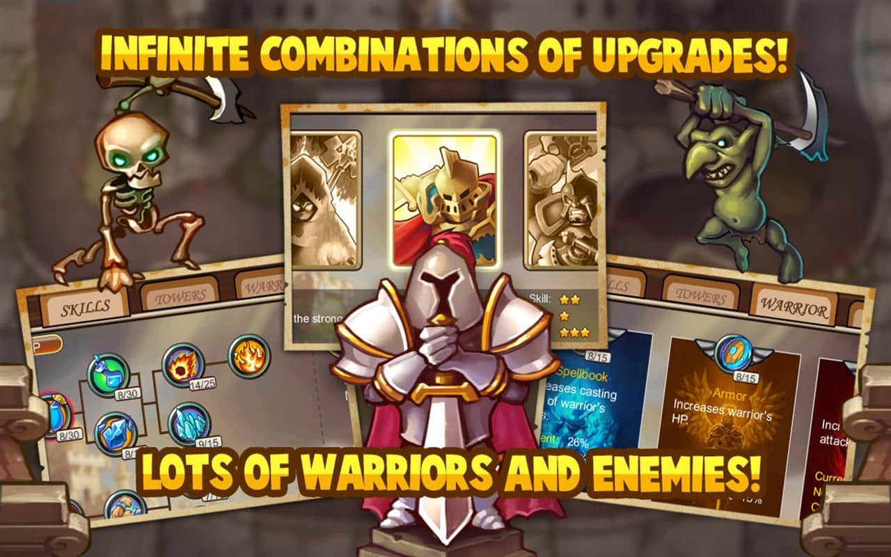 Castle Defense - отличная стратегия в стиле Tower Defense - в ней вы будете обороняться от врагов 20-ти видов - белые медведи, гоблины, приведения и боссы. Вы выбираете одного из трех героев - варвар, палладин или мастер, дальше разрабатываете стратегию, выставляете и направляете свои 4 основных вида и 8 главных башен и начинаете усиленную оборонительно-уничтожающую атаку надвигающегося противника! На протяжение всех 15 локаций вы защищаете свое право на жизнь, тем самым увеличивая свой авторитет, а также получая массу достижений ( до 30). Ну а после прохождения всей игры в обычном режиме, вам откроется тяжелый уровень сложности и несколько модернизаций!
