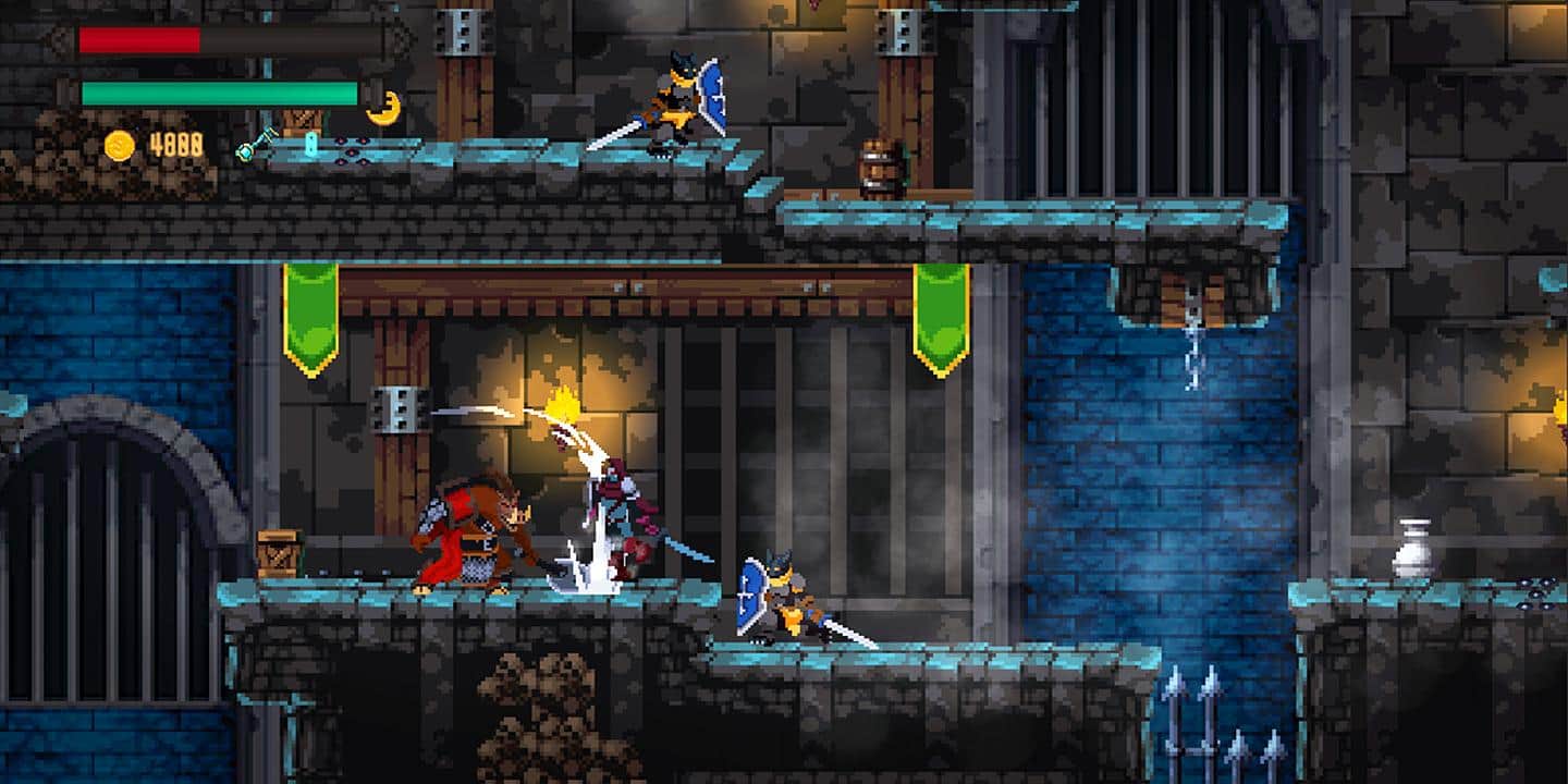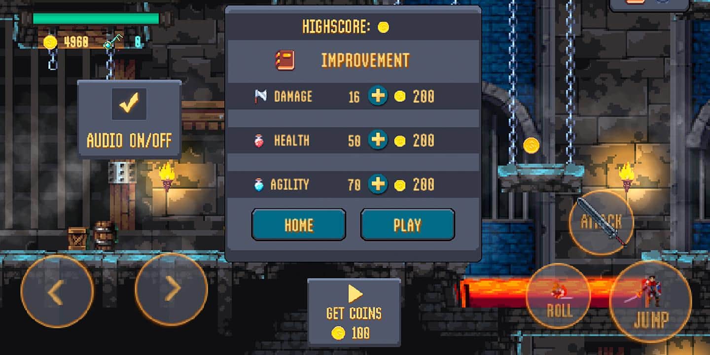 Привет, казуалы. В этой игре отличная музыка, но она одна, и повторяется бесконечно. Всего 10 уровней. Управление отличное, если бы не оно, игру можно пройти за минут 20-30. У персонажа есть так же выносливость, влияет на качество прыжка, сможете ли вы сделать кувырок или нет. Есть возможность хвататься за край платформы и лазить по стенам. Есть так же в игре ловушки в виде шипов на полу, шипов в яме, лавы в яме, огненные шары. Последняя ловушка может обмануть вас если ждёте тайминг. Работает только когда вы на её уровне. Боссы по сути лёгкие, но управление делает сражение более интересным. К примеру у вас не получится быстро сделать кувырок в одну сторону, повернуться в сторону противника и ударить. Сражаясь с обычными противниками вы получите однозначно урон, но если быть хитрым есть возможность проходить без урона.