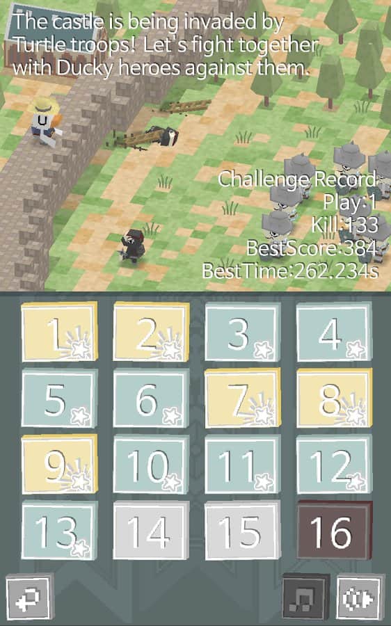 Castle of Duck - на планете, в которой проживают мирные утки, прилетели злобные черепахи, которые хотят поработить всех на этой мирной планете. Но утки так просто не сдадутся, отражайте атаки врага, и покажите кто здесь хозяин. Используйте вашу реакцию и внимательность для того чтобы одолеть захватчиков.