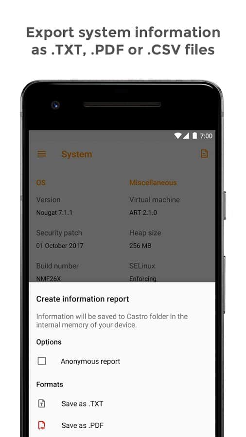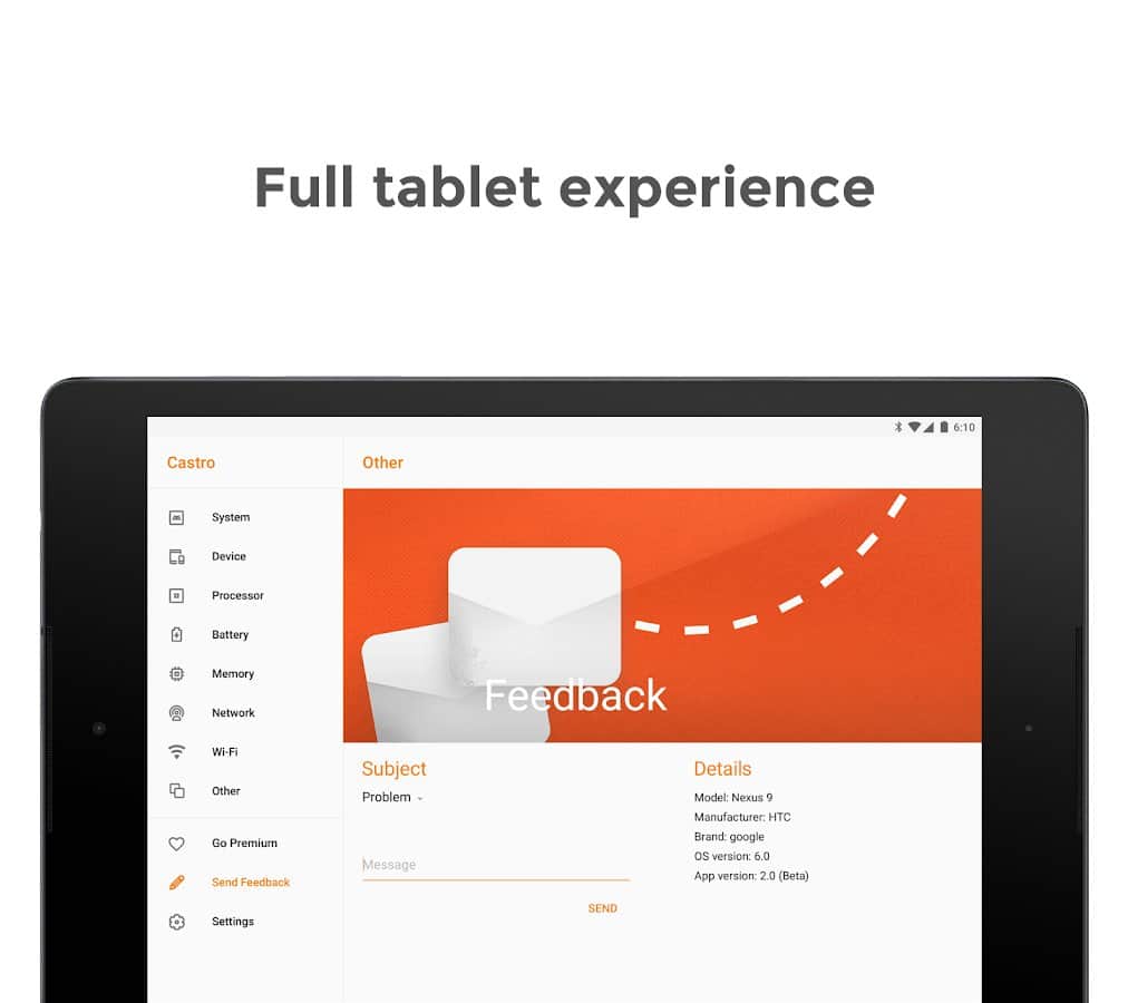 Чтобы лучше понимать, что и как работает в вашем сматфоне необходимо держать под контролем все возможные показатели — это поможет избежать проблем в будущем или, если они уже случились, скорее привести систему в порядок. Castro в режиме реального времени показывает загруженность процессора и его основные характеристики, состояние оперативной и постоянной памяти, данные о мобильных сетях, Wi-Fi, состоянии аккумулятора и его возможном нагреве и многое другое. Интерфейс выполнен в вездесущем материальном дизайне.