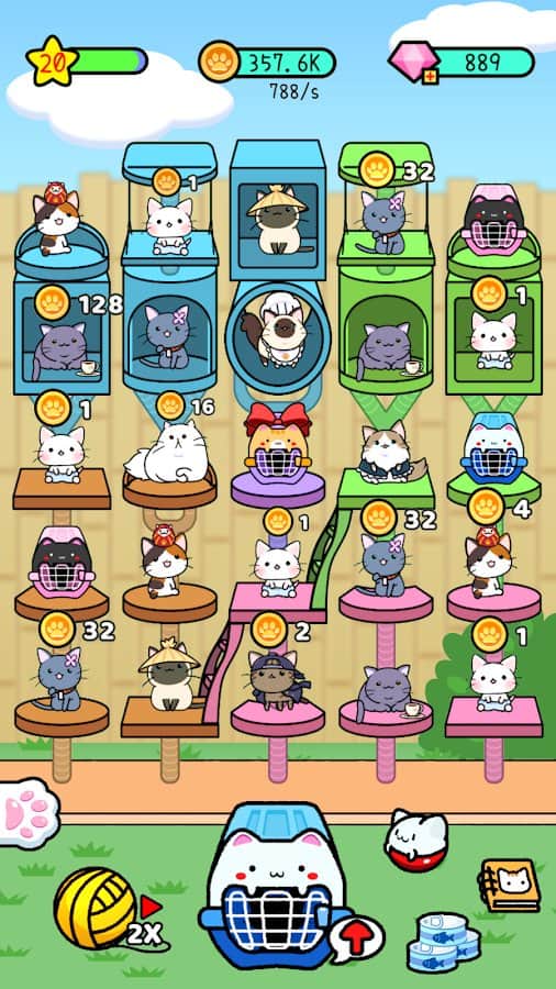 Cat Condo 2 – вторая часть популярной игры на андроид, где вы будете коллекционировать кошек. В этой игре вы окунетесь в увлекательный и неповторимый мир кошек где вашей задачей будет собрать свою коллекцию милых пушистых зверьков. Начните свое приключение прямо сейчас и объединяйте между собой одинаковых кошек тем самым выращивая кошачье дерево и строя огромную башню. Собирайте коллекционные предметы, которые специально созданы для ваших любимцев и украшайте котов шапочками, колокольчиками и другими модными аксессуарами. Создайте свой неповторимый мир кошек и меняйте тип платформы, цвета и фоны.