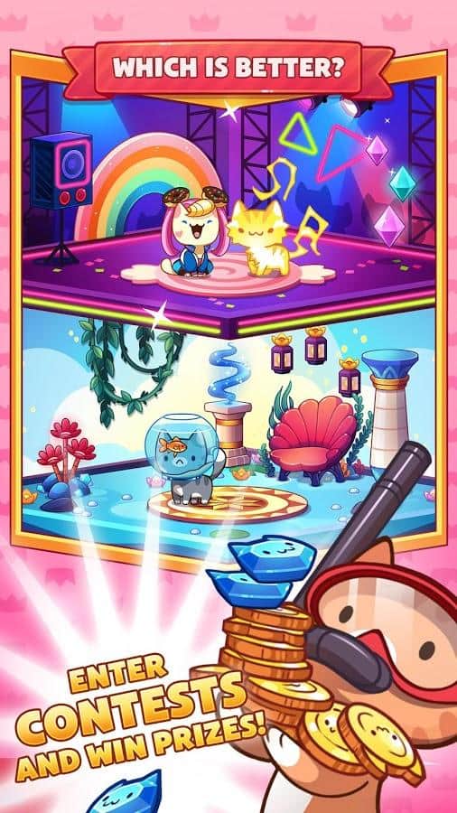 Cat Game - The Cats Collector! – веселая и увлекательная игра на андроид, где вы будете собирать котиков и играть с ними. В этой игре вы отправитесь в увлекательное путешествие по сказочному миру где будете искать и находить котиков, заботиться о них и строить свою котобашню. В этой игре вы сможете подключить свою фантазию и создавать невероятные вещи и наслаждаться превосходным юмором. Играйте в эту игру со своими друзьями и весело проводите свое свободное время. Соревнуйтесь с другими игроками за лучшие результаты, играйте в мини-игры и получайте уникальные призы. Открывайте для себя легендарных котиков и просто весело проводите свое свободное время.