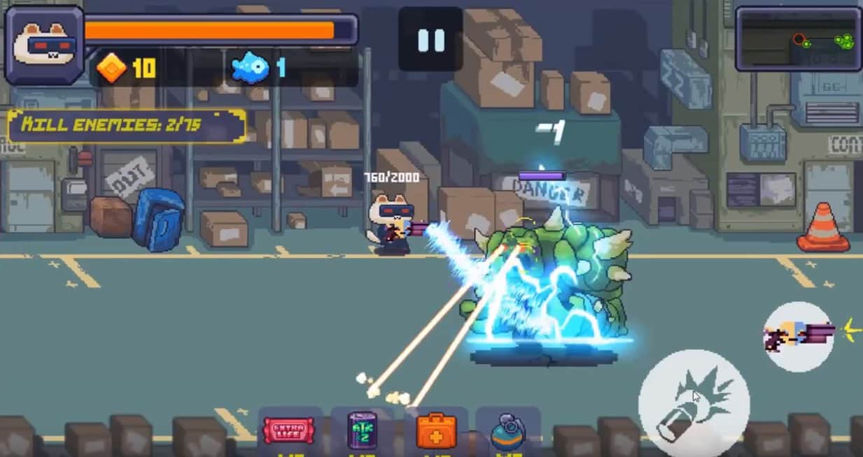 Cat Gunner: Super Force - пиксельная экшен аркада сюжет которой расскажет нам о стране населенной кошками. По задумке авторов в некогда благополучный мир падает метеорит и пушистые создания начинают превращаться в зомби. Вам же необходимо собрать команду способную уничтожить монстров. Всего вас ждет несколько десятков сюжетных миссий, широкий выбор вооружения, а так же различные игровые режимы. Стильная пиксельная графика как нельзя лучше гармонирует с общей атмосферой игры.