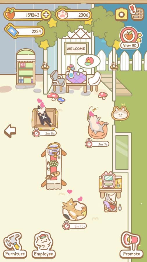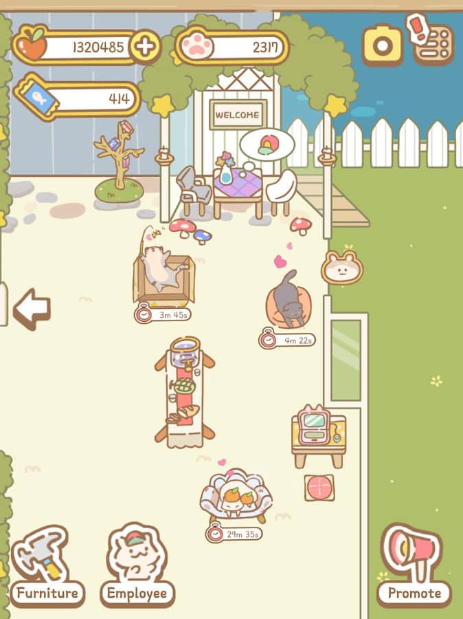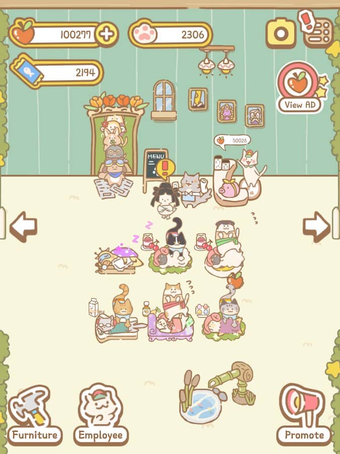 Cat Spa - это одно из самых милых и спокойных мест, где можно расслабиться всем кошкам. Станьте руководителем замечательного спа-салона с множеством полезных и расслабляющих услуг: массаж тела и отдельных частей, стрижки и прически, нанесение масок и макияжа, маникюр, прочее. Сами решайте как будет выглядеть помещение (включая мебель, декорации), нанимайте на работу хороших специалистов-помощников, качественно обслуживайте посетителей, постоянно развивайтесь разными способами и получайте щедрую прибыль.