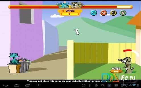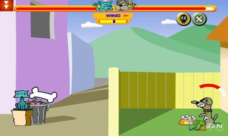 Cat vs Dog Deluxe - продолжение противостояния кошек и собак в увлекательной аркаде для андроид. Геймплей прост и понятен и понравится даже самому маленькому пользователю андроида. В двух соседских домах живут кот и пес. Между ними забор, но это не мешает им ссориться. А по ходу ссоры они кидают через забор разные предметы - от кости до более тяжелых и весомых. Именно этим вам и предстоит заняться. Играйте с ребенком или друзьями, и не забывайте про силу ветра при броске!