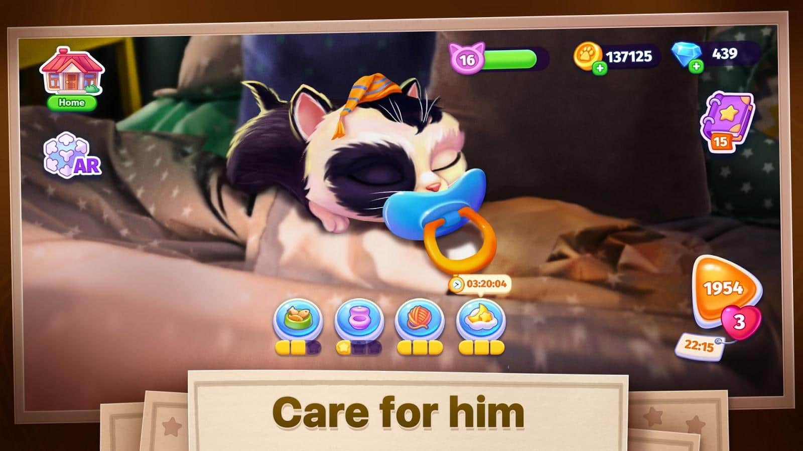 Catapolis: Grand Pet Game - Если у вас нет котика, но вы всегда мечтали о пушистом друге, Catapolis — это идеальный шанс побывать в роли хозяина домашнего любимца. Как известно, котики не могут жить без любви, ласки и заботы, поэтому не забывайте ухаживать за ним, играться, кормить и делать его счастливым! Познакомь своего малыша со всеми соседями по дому, обустройте ему красивую и уютную комнатку, он обязательно отблагодарит вас безграничной любовью. Пока твой малыш будет отдыхать, развлеклись и поиграй в Match-3 игры, пройди более 400 уровней и зарабатывайте подарки для своего любимого пушистика!