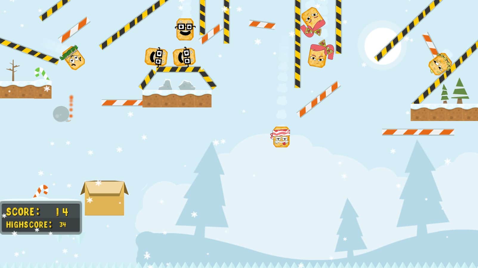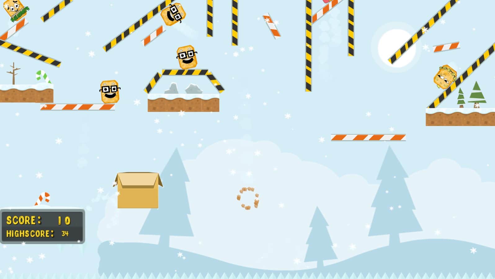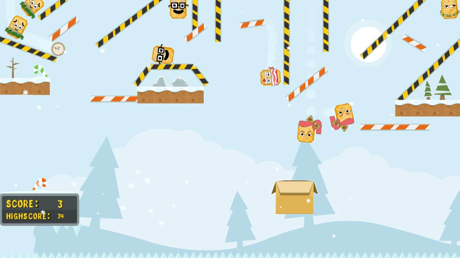 catch a cracker Christmas – соберите все падающие крекеры в огромную коробку. В этой игре вашей задачей будет перемещать по игровому полю коробку и ловить падающий крекер, при этом стараясь не поймать бомбу или столкнутся с преградами. Покажите на деле всю свою ловкость пальцев, перемещая коробку в разные стороны не позволяя не одному крекеру упасть вниз. Внимательно следите за всеми движущимися преградами и ловите падающие будильники, которые замедляют время. Набирайте достаточное количество очков и соревнуйтесь с друзьями за лучшие результаты в игре. Игра порадует игроков забавными мордашками крекера, приятной музыкой и простым и понятным управлением.