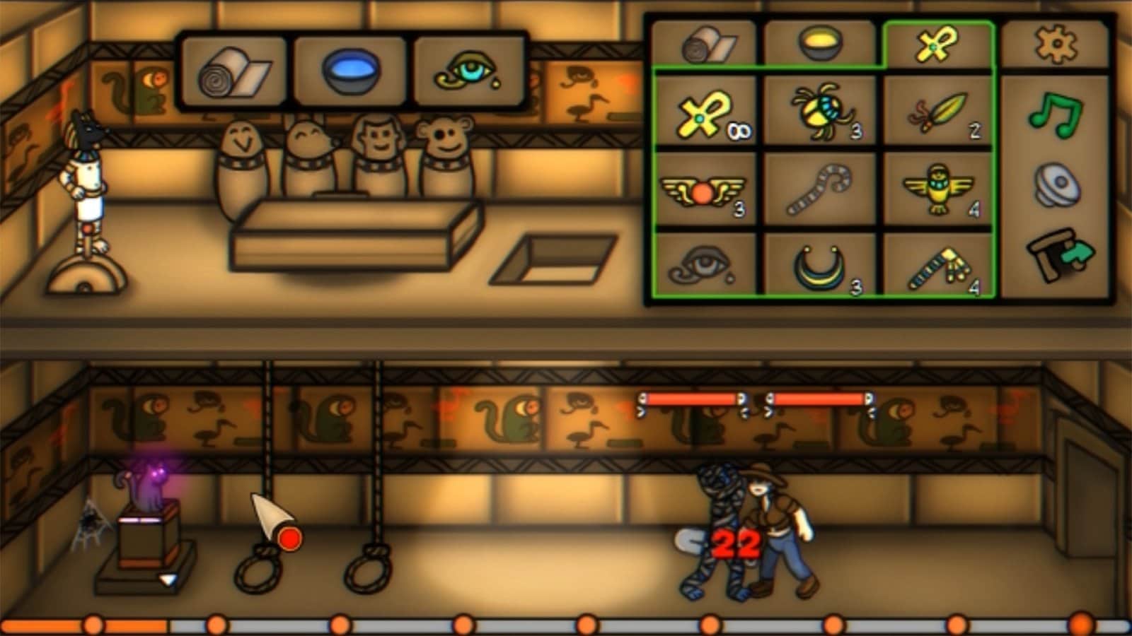 Catfender: defend pharaoh’s cat and tombs – увлекательная игра на андроид, где вы будете выступать в роли жреца Анибиса. Вас поместили в гробницу фараона чтобы вы защищали ее от разграбления алчными людьми и защитили фигурку любимого кота. Охраняйте покой усыпальницы фараона и уничтожайте людей, который пытаются ограбить гробницу. Прокачивайте и улучшайте свою мумию на протяжении всей игры и призывайте не помощь своих помощников. Приготовьтесь к встрече с сильными боссами и положитесь на умения фигурки кота.