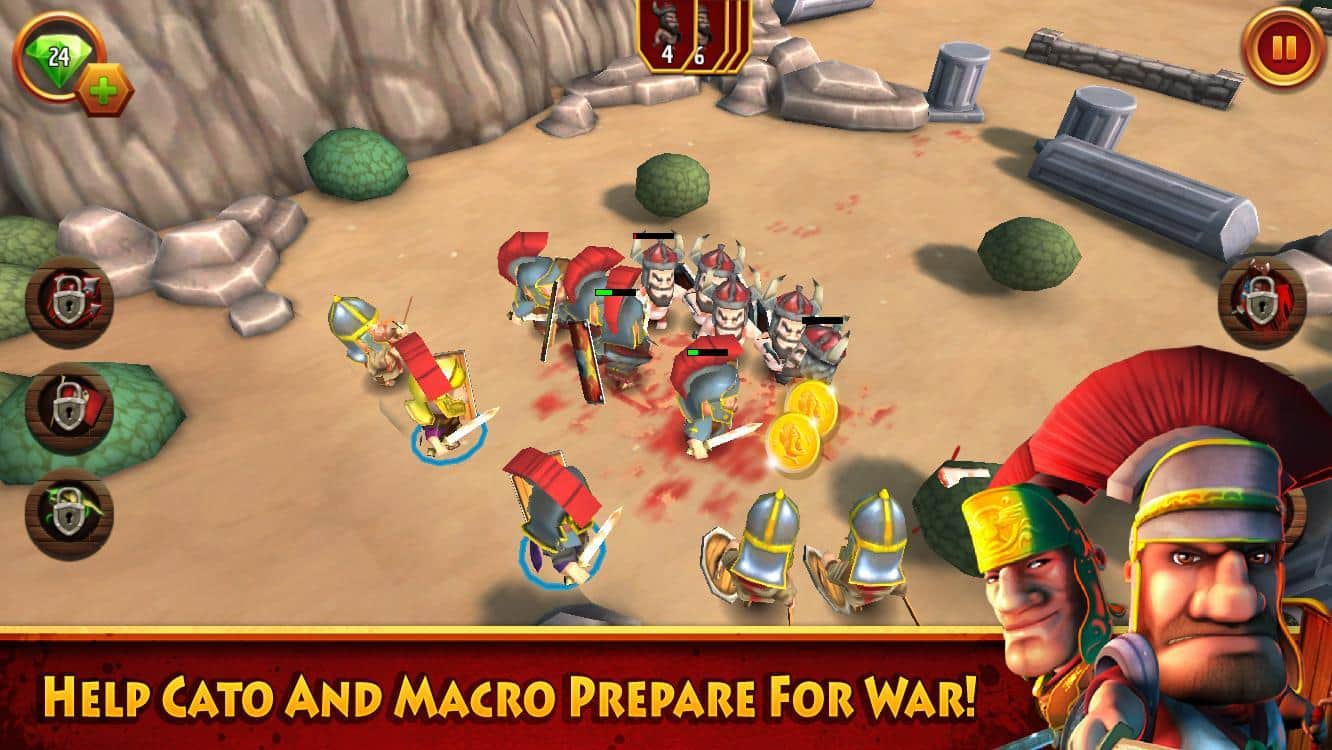 Cato and Macro - игра про двух полководцев, и их героические походы. Играй за Като и Макро как предводителей армии, используй хитрые уловки и их способности, чтобы управлять армией и сокрушить врага. Сражайся на полях Европы, Северной Африки и Ближнего Востока. Расширь границы Римской Империи, пусть весь мир подчиниться тебе. В то же время расширяй свой собственный город, строй различные сооружения, нанимай и улучшай воинов Рима, и докажи всем, что ты достоин титула Цезарь.
