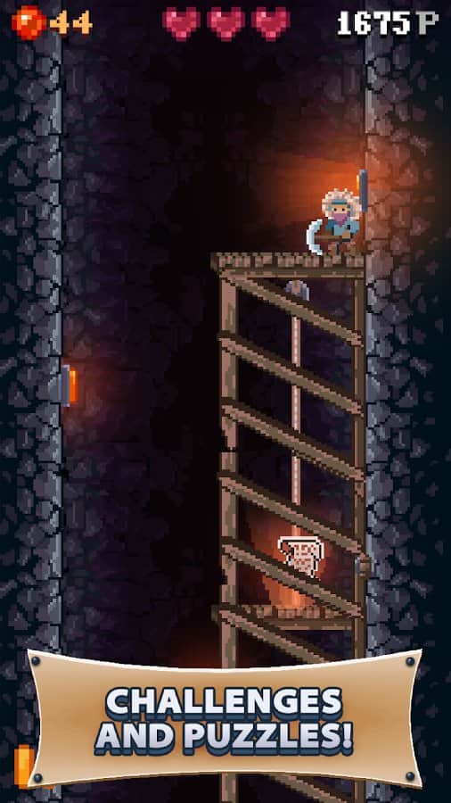 Cavefall – аркада на андроид, где вы будете помогать отважному исследователю, спуститься в мрачную пещеру. Наш герой будете спускаться в пещеру, перемещаясь от одной стены к другой и задерживая свое падение с помощью кирки. Вашей задачей будет спуститься на самое дно и раскрыть тайну исчезновение арктической экспедиции. Будьте предельно внимательны и осторожны, ведь в глубинах этой пещеры вашего героя подстерегают острые шипы на стенах, многочисленные преграды и летучие мыши. По пути собирайте монетки, бонусы и записки пропавшей экспедиции. Открывайте для себя новые пещеры, которые порадуют вас новыми испытаниями.