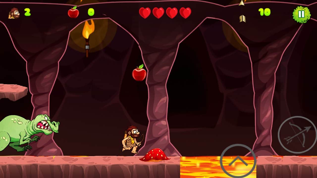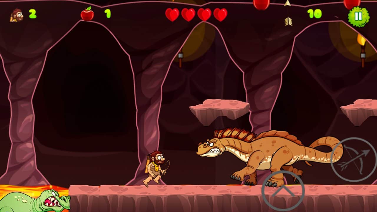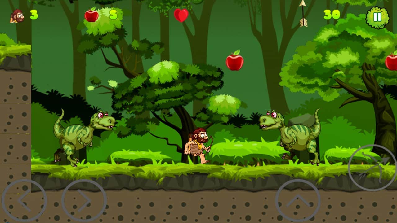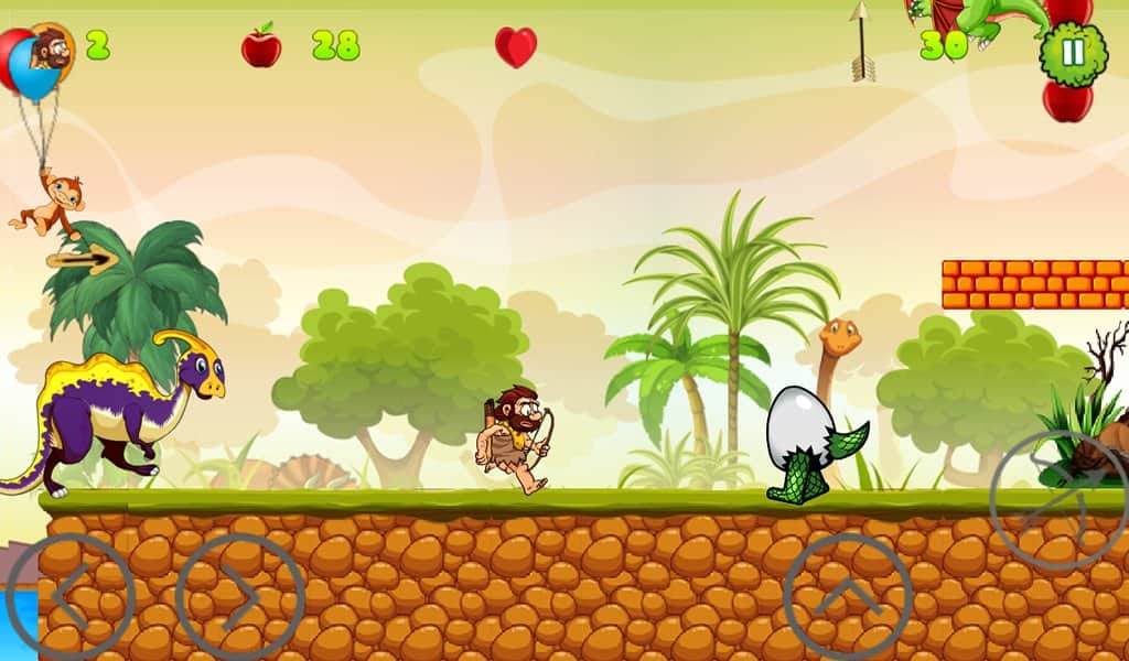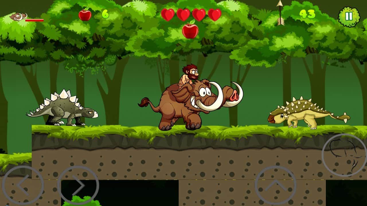 Caveman Adventure – платформер на андроид, где вы будете помогать пещерному человеку выживать в диких джунглях. В этой игре вы окажитесь в юрском периоде, где обитают огромные динозавры готовые проглотить вас в один миг. Вашей задачей будет помочь пещерному человеку исследовать этот опасный мир и выжить в нем. Бегайте, прыгайте и перемещайтесь по четырем различным мирам на мамонте, при этом избегая встречи с многочисленными врагами. По пути собирайте многочисленные бонусы и монетки, которые помогут вам быстрее завершить уровень и заполучить все звезды. Наслаждайтесь увлекательным и захватывающим игровым процессом и дойдите до конца в этой игре.