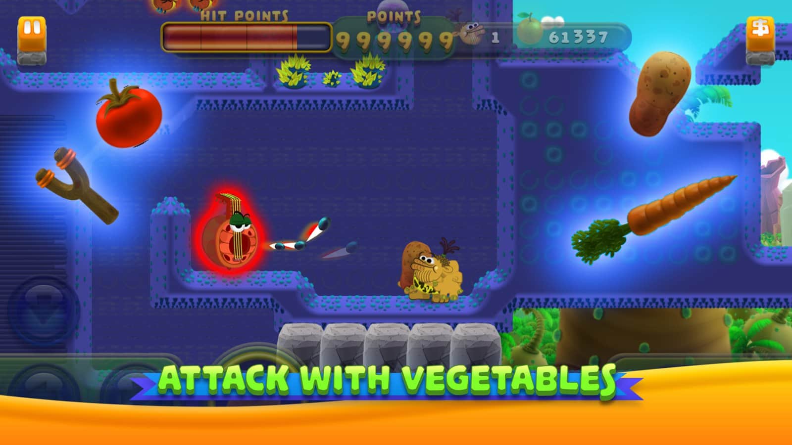 Caveman Boggo's Adventure - красочный платформер в котором нам отводится роль неандертальца и отправляет нас в доисторический мир. В целом игровая механика выполнена по классической схеме, бегите, прыгайте, решайте головоломки, сражайтесь, главное доберитесь до цели. Однако разработчики реализовали и ряд оригинальных идей, так например в своем путешествии при решении поставленных задач вы будете использовать овощи, да ка оказалось наш герой вполне ладит с морковью, картофелем, брокколи, что позволит вам использовать их свойства. Так же стоит отметить интерактивность игровой среды, помимо взаимодействия с окружающим миром по средствам своего персонажа, вы сможете разрушать или перемещать элементы и сами, при помощи свайпов.
