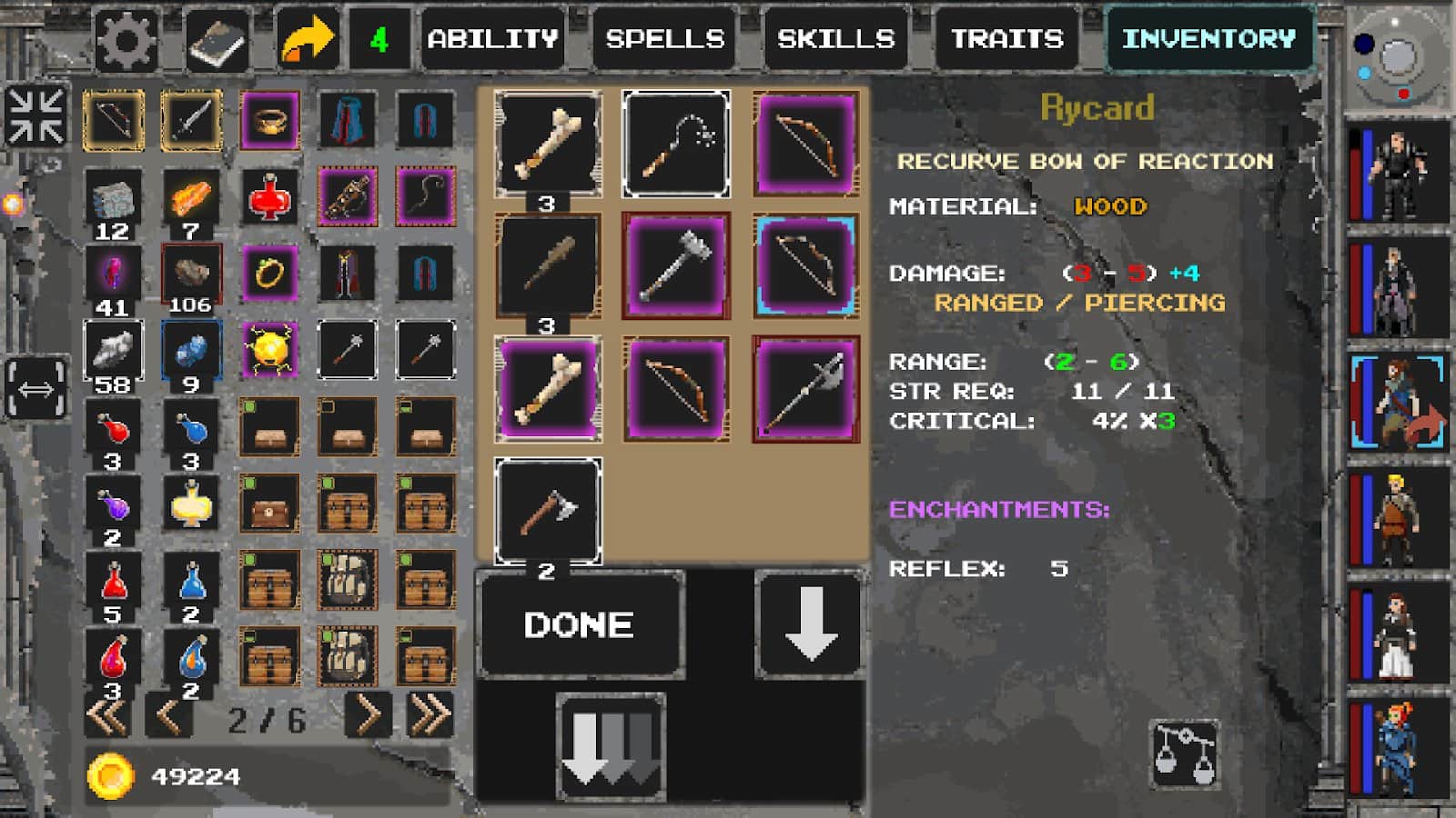 Caves of Lore — пошаговая фэнтезийная CRPG с пиксельной графикой, где сочетаются исследования, взаимодействие с персонажами и тактические бои на сетке. Игроки могут управлять группой из 6 героев, используя более 65 заклинаний и способностей, сражаться с 50+ монстрами и решать 30+ квестов. В игре представлены десятки уникальных предметов, а также сотни возможных комбинаций чар для создания мощных артефактов.