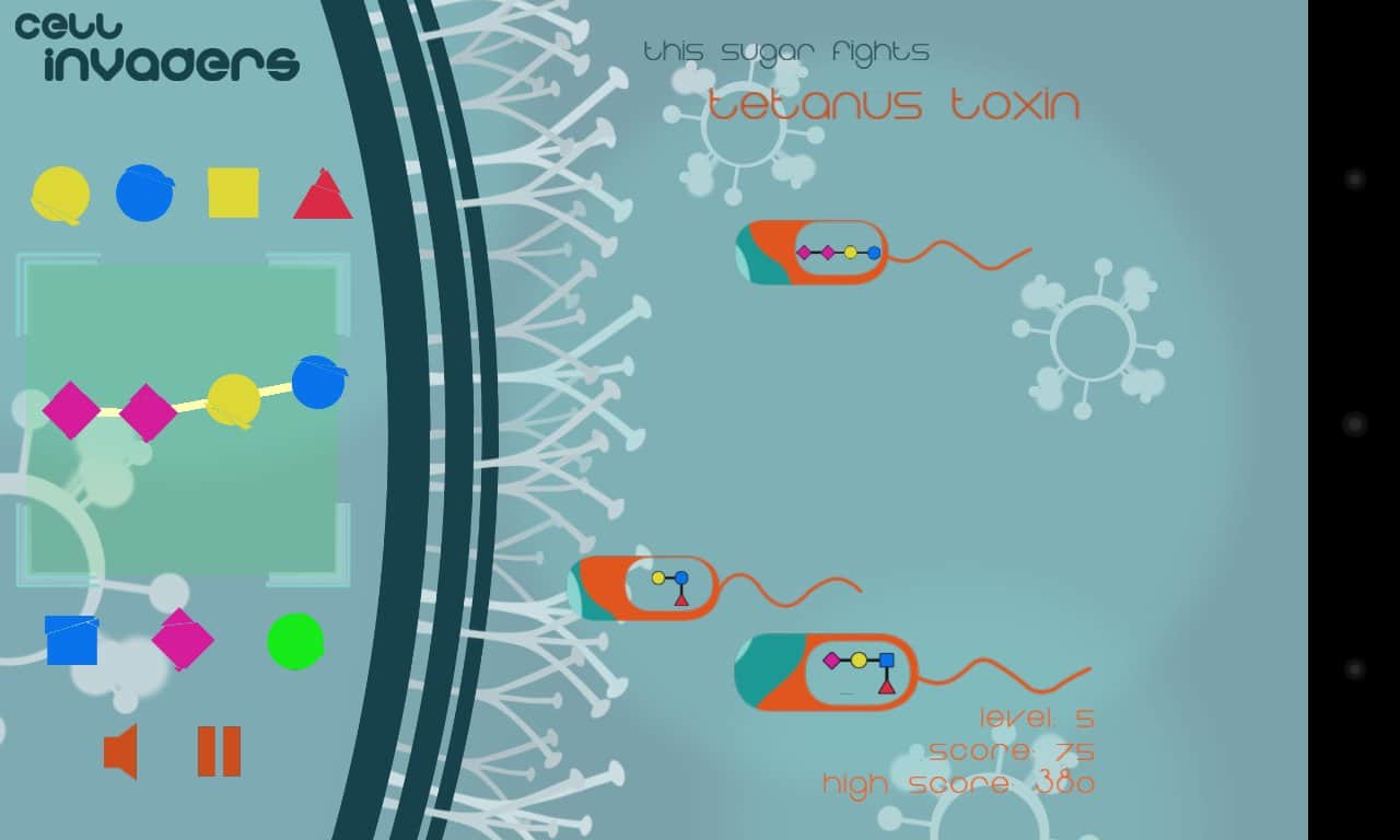 Cell Invaders - игра на андроид, в которой вам необходимо группировать сложные полисахариды, чтобы отбиваться от назойливых патогенных бактерий, вирусов и различных токсинов. Ваша задача заключается в том, чтобы вовремя обезвредить патогенные бактерии и вирусы нужными антидотами и не дать себя заразить.