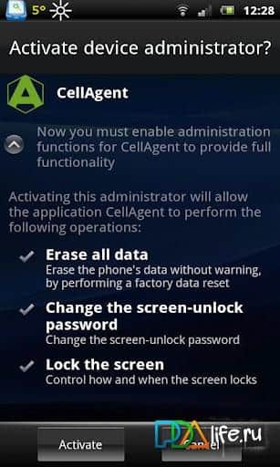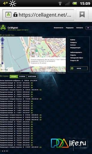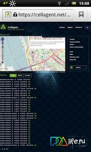 Мониторинг любого устройства, работающего под управлением OS Android 2.2 и выше и имеющего выход в Интернет через GPRS/3G/UMTS/Wi-Fi . Используется вместе с сервисом cellagent.net. Для поиска телефона при отсутствии интернета (отключен Wi-Fi/3G/GPRS) использует дополнительный канал запрос/ответ с помощью SMS.