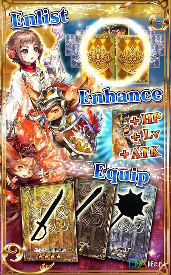 Chain Chronicle – RPG - Соберите добровольческую армию из разных солдат: лучников, рыцарей, волшебников и т.д. После этого участвуйте в тактических стратегиях, чтобы защитить свою базу от противников. У вас будет более 150 рекрутов с различными способностями, раскройте потенциал ваших солдат и победите в этой нелёгкой борьбе. Управляйте одиноким солдатом, который должен сражаться, чтобы защитить мир от вторжения Чёрной армии. Вас ждёт прекрасная аниме графика и звук.