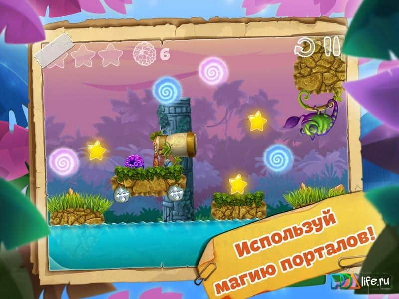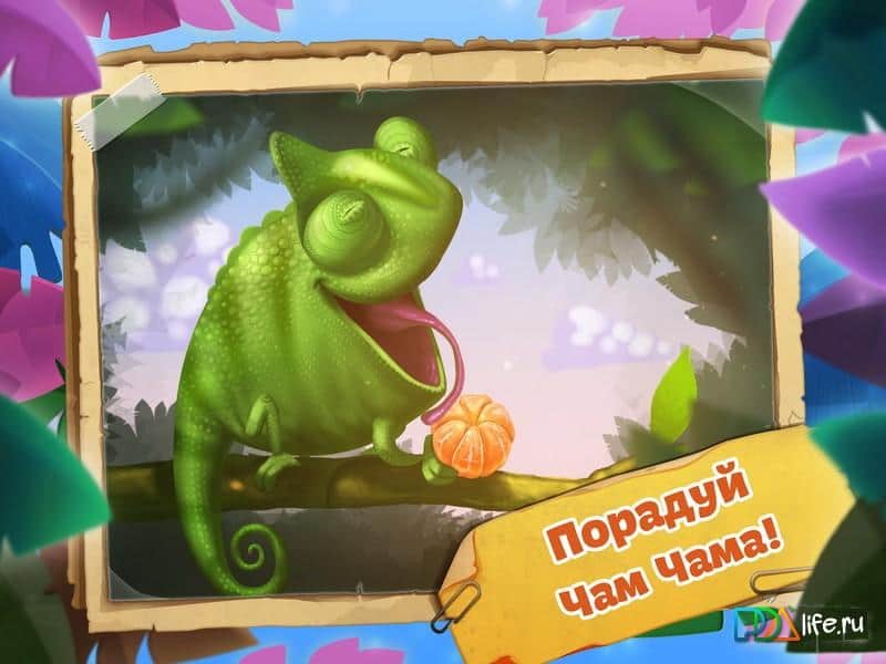 Cham Cham - игра головоломка на аndroid, в которой вам предстоит накормить спелыми мандаринками милого хамелеона. Больше всего он в своей жизни любит мандаринки и чтобы помочь ему их заполучить вам необходимо использовать пушки, порталы и силу ветра, чтобы мандаринки попали прямо в рот нашему другу. Стреляйте из пушек, используя их различный наклон, и остерегайтесь различных препятствий встречающихся у вас на пути. Пройдите все 75 уровней и проверите свою ловкость и меткость на деле.