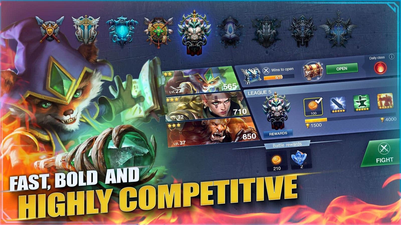 Champions Destiny – увлекательная стратегия MOBA на андроид, где вы будете сражаться в онлайн баталиях. Выбирайте себе подходящего героя из представленных в игре персонажей, каждый из которых обладает уникальными навыками и умениями. Соберите непобедимую команду и сражайтесь на арене против игроков со всего мира в трех минутных PvP битвах. Разрабатывайте свою непобедимую тактику общаясь с другими игроками в общем чате и постарайтесь уничтожить базу противников быстрее, чем они доберутся до вашей. Прокачивайте своих героев по ходу игры и получайте ценные награды. Участвуйте в ежедневных турнирах и получайте ценные награды и бонусы.