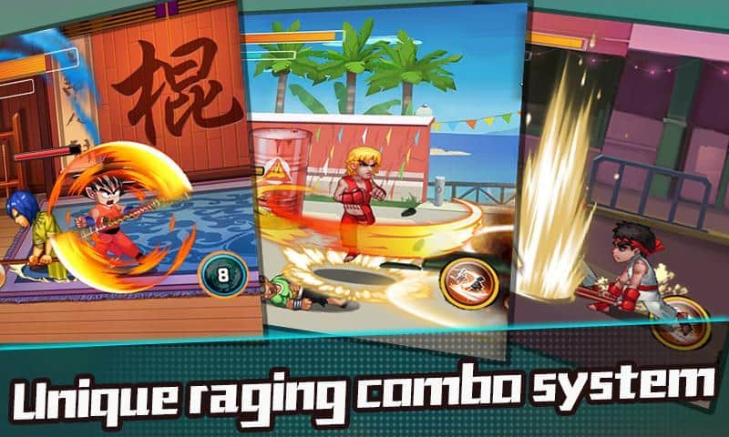 Chaos Fighter Kungfu Fighting – игра на андроид, где вы возьмете под свой контроль бойца который владеет различными единоборствами. В игре вы будете перемещаться по улицам города и другим локациям и вступать в бой с многочисленными врагами. С помощью прикосновений пальца к экрану управляйте движениями героя и заставляйте его совершать прыжки и применять сокрушительные удары. Используйте приемы каратэ, кунг-фу и проделывайте комбо удары чтобы победить сильных боссов. Также применяйте в бою оружие и осваивайте новые приемы и умения. Впереди вас ждут 50 неповторимых уровней, множество врагов и различного оружия.