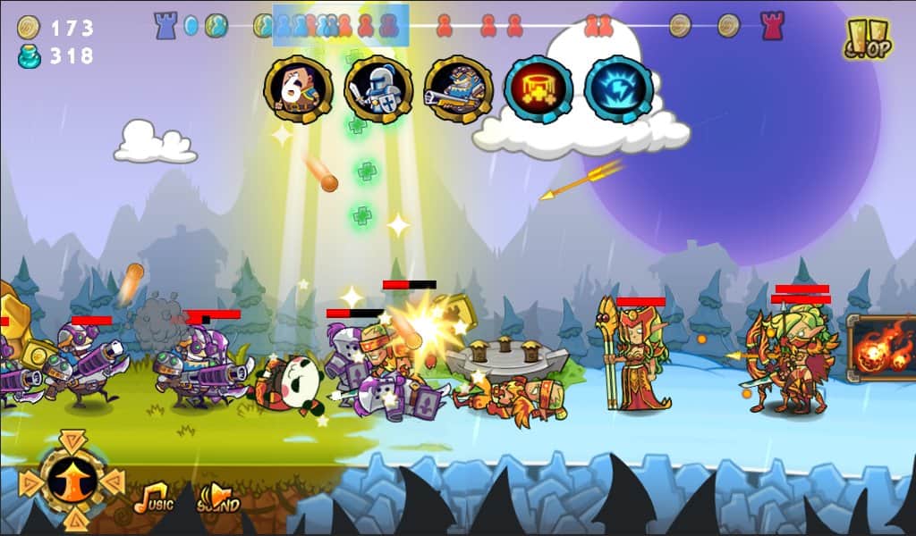 практически пословный клон годной стратегии Swords & Soldiers вся разница лишь в перенесении из псевдо-истори в фэнтези. чрезвычайно вторично, хотя работяги у эльфов доставили )