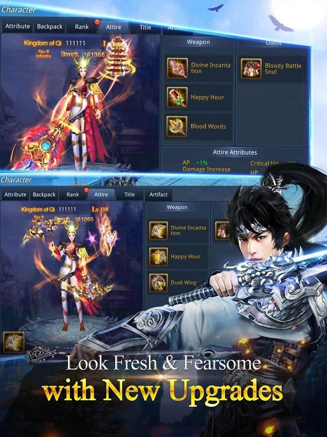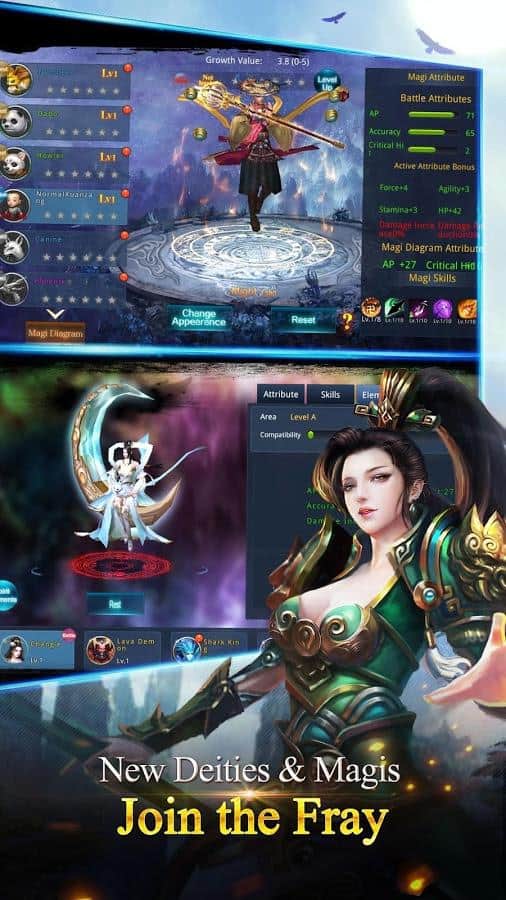 Chaos Legends – RPG на андроид, где вам предстоит участвовать в эпической войне нескольких королевств и исследовать огромный мир. В этой игре вы окунетесь в мир восточной мифологии, где насладитесь отличной графикой и реалистичными спецэффектами. В этой игре вашей главной задачей будет собрать огромную армию воинов и сражаться за власть, во всем мире захватывая королевства многочисленных соперников. Вступайте на тропу войны и не дайте врагам победить вас и захватить власть. Выбирайте себе одного из трех воинов представленных в игре, каждый из которых обладает уникальными способностями и умениями. Приручайте боевых питомцев и оседлайте своего коня, который промчит вас по бескрайним просторам игры. Проходите различные испытания и открывайте доступ к новым неизведанным территориям. Бросайте вызов своим друзьям и другим игрокам и сражайтесь в режиме реального времени.