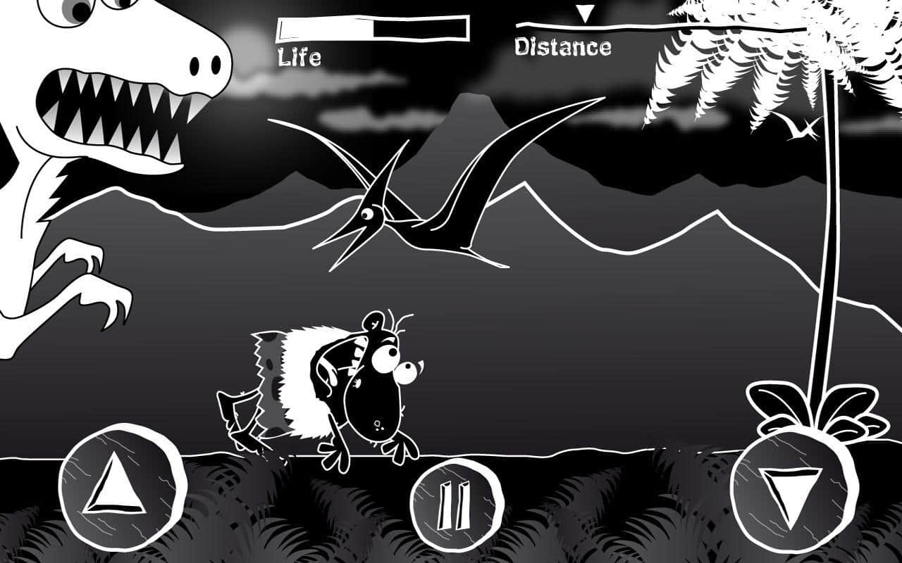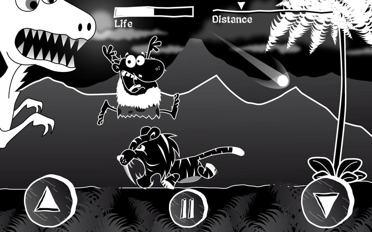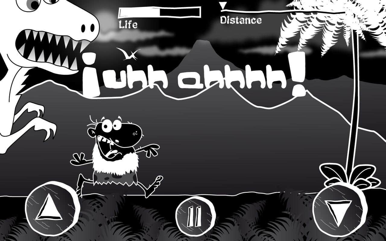 Chase Caveman - это раннер для андроид, выполненный в необычной графике, а именно в черно-белом стиле. Игра получилась довольно таки неплохая. По сюжету вы отправляетесь во времена древности - племен, дикарей и пр. А главный герой - некий абориген, который мирно сидит у своего костра и жарит шашлык. Но тут из-за кустов раздается дикий рев и появляется Динозавр. Дикарю ничего не остается, как бежать, что есть духу! Вот тут и начинается само действо. Вам предстоит спастись от зубастого и голодного динозавра, убегая от него. Но на вашем пути будут встречаться и другие препятствия в виде других диких животных, например, тигра, или же птиц - например, птеродактилей. Если вы сможете вовремя увернуться или подпрыгнуть, то гонящийся за вами динозавр слегка утолит свой голод, и возможно, будет бежать не так быстро за вами....