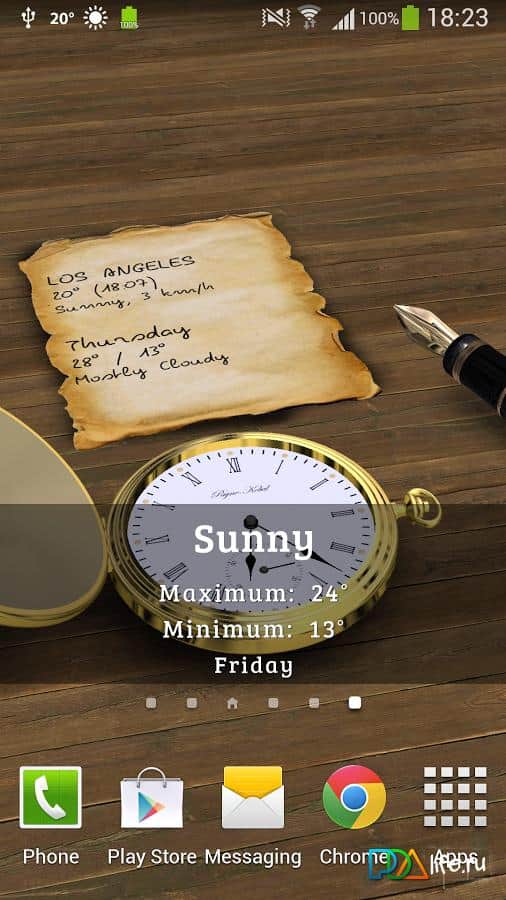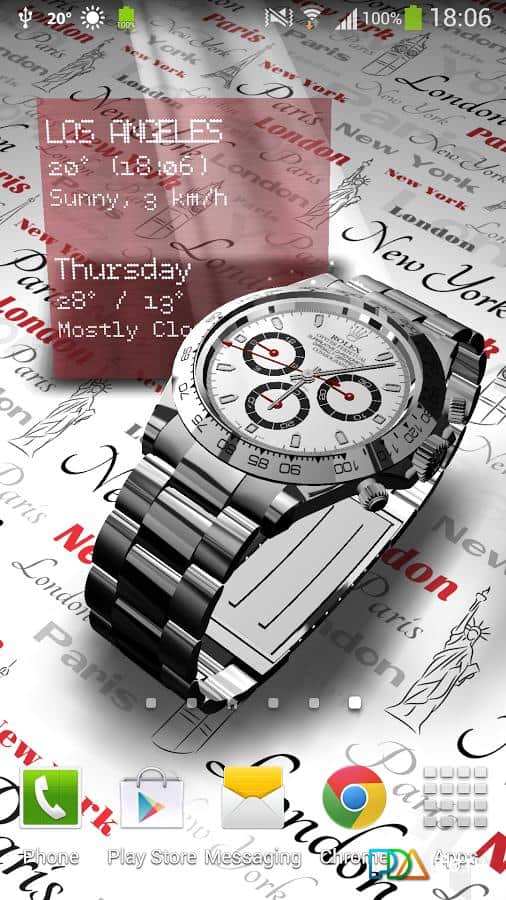 Часы с погодой – стильные живые обои для андроид устройств, которые отразят информацию о погоде за окном в реальном времени с использованием 3D-изображений. Выберете одни из восьми вариантов уникальных часов, которые украсят экран вашего смартфона или планшета с анимацией секундной и минутной стрелок. Можно просмотреть прогноз погоды на 10 дней и спланировать свои дела, опираясь на полученные данные. Так же доступна анимация смены времени суток и погодных условий. Приятного пользования.